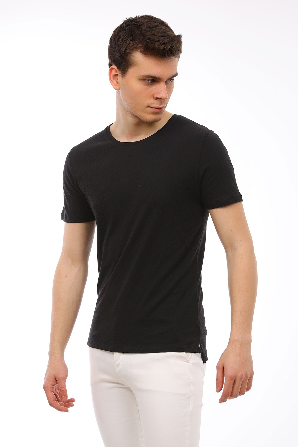 - Yuvarlak yaka, kısa kollu t-shirt.
