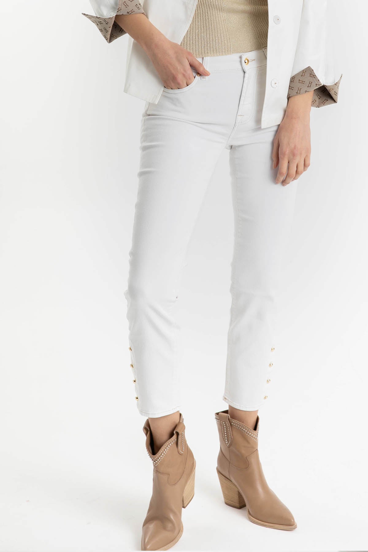 - Paça bitişlerinde gold renk metal aksesuarlar.