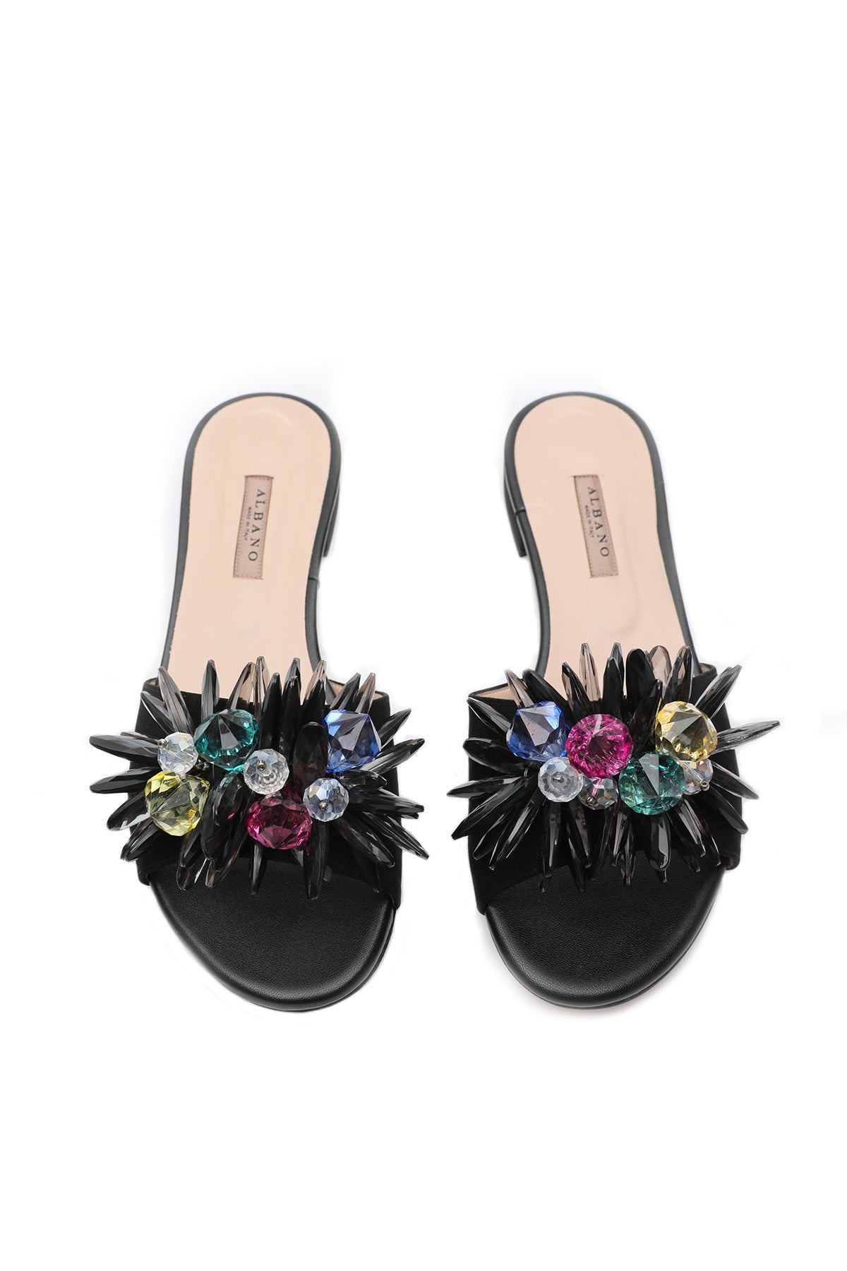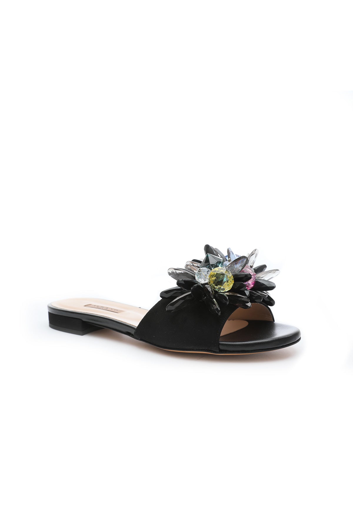 - Renkli taş detaylarıyla dikkat çeken bu terlik ile renk katmak istediğiniz kombinler için anında bambaşka bir hava yaratabilirsiniz. Basic bir elbise bile göz kamaştıracak bir look’a dönüşebilir.