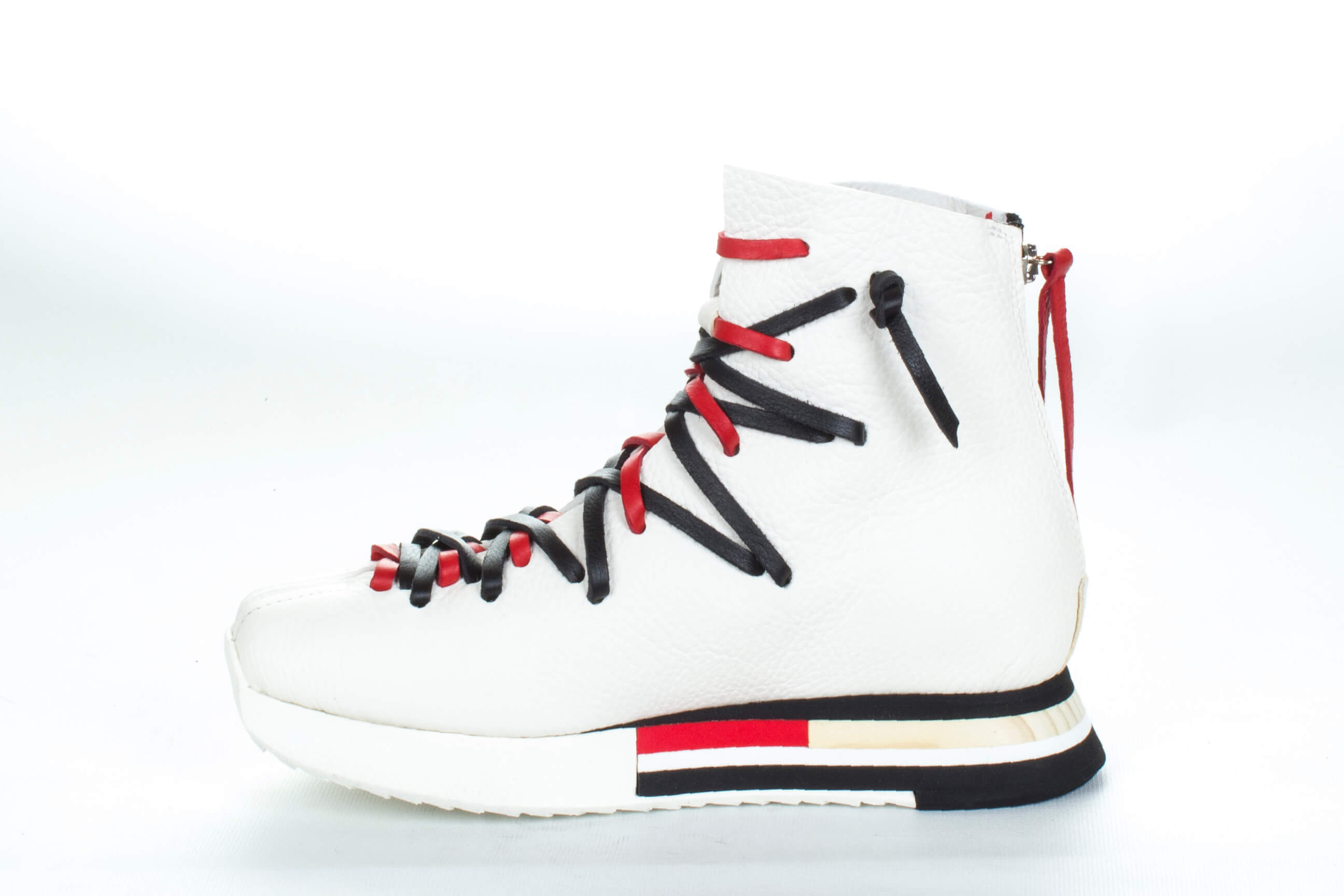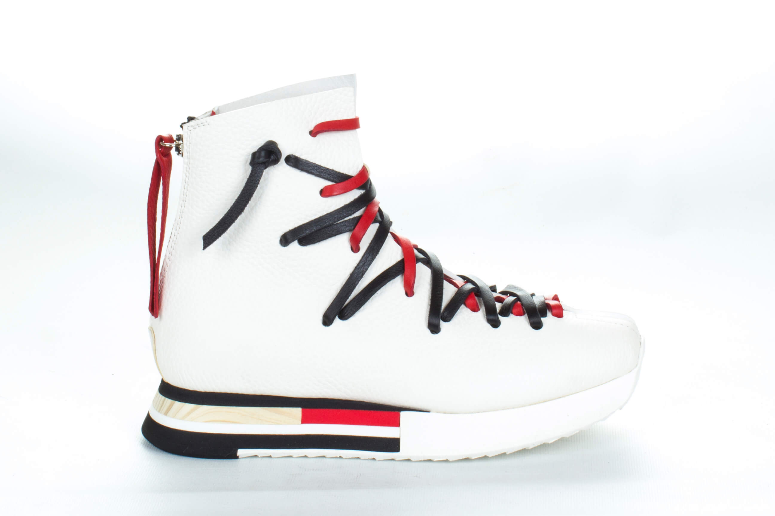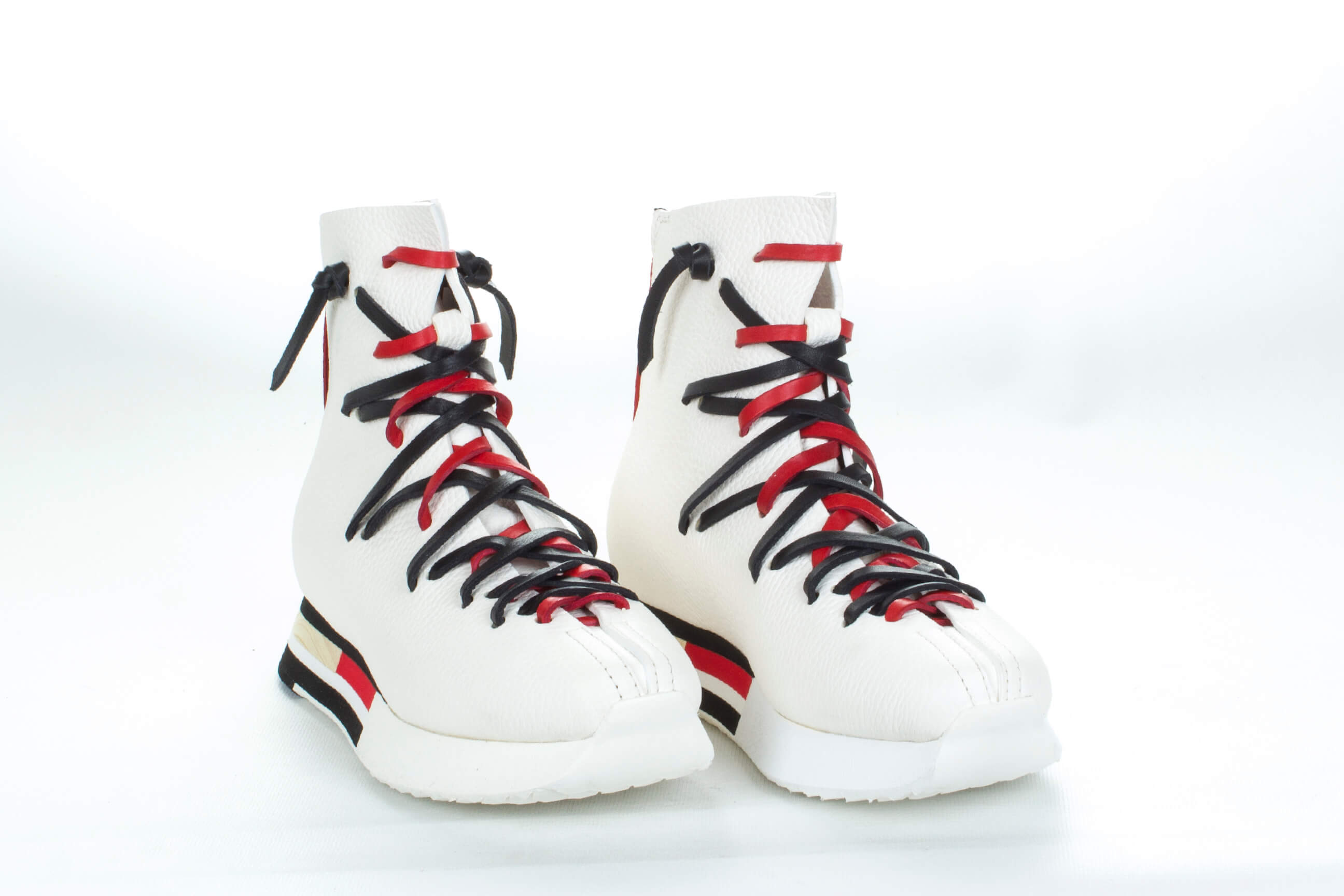 - Asimetrik renkli bağcık detayları