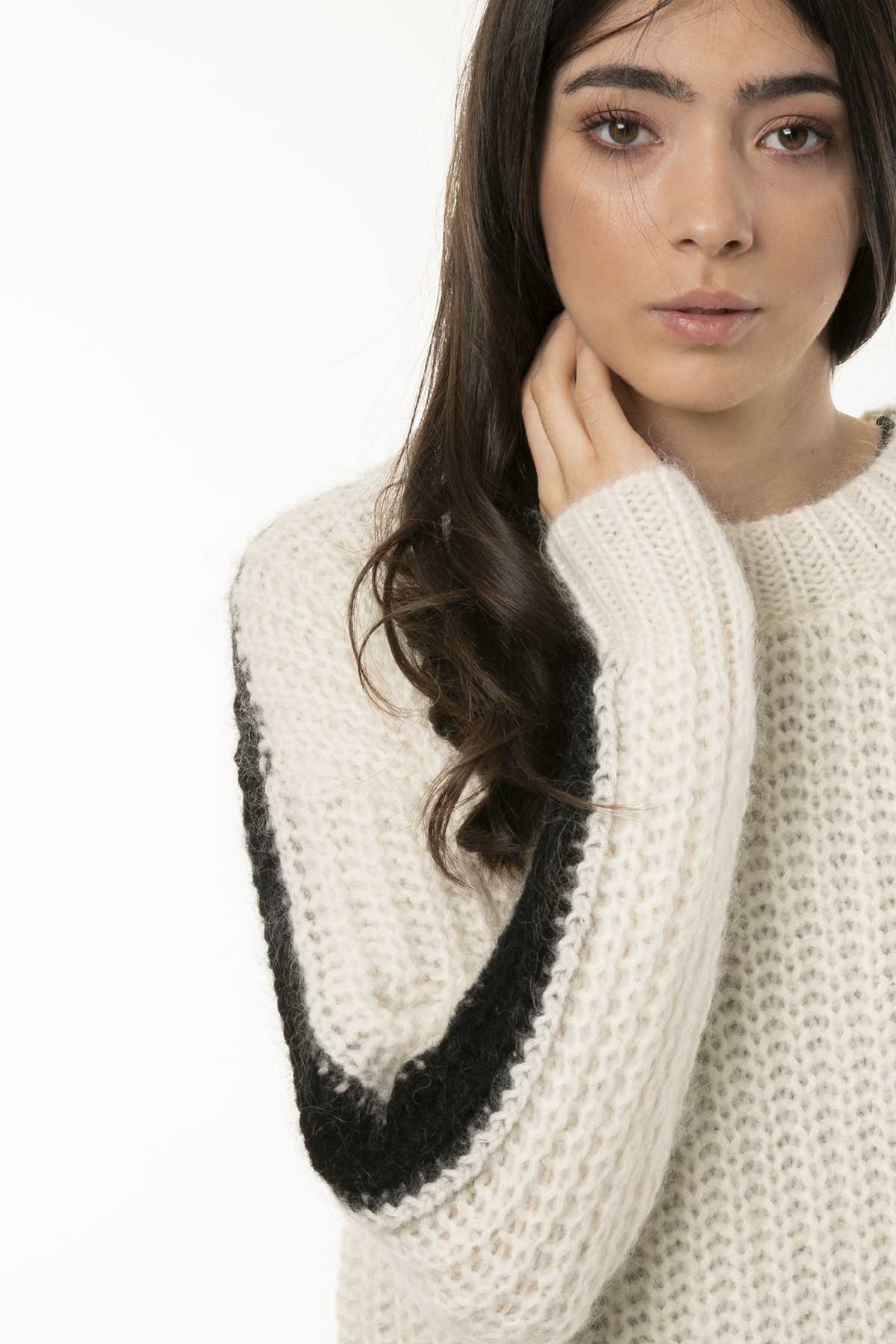 - Kalın ribanalı yaka,manşetler ve etek ucu.