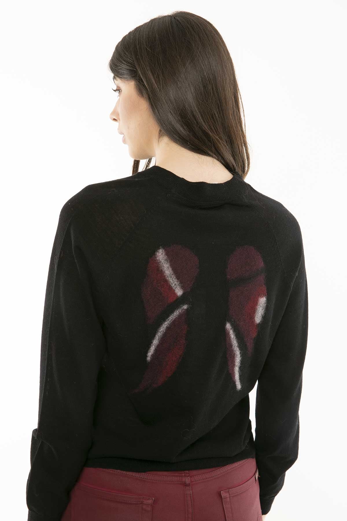 - Sırt kısmında işlemeli kanat deseni.