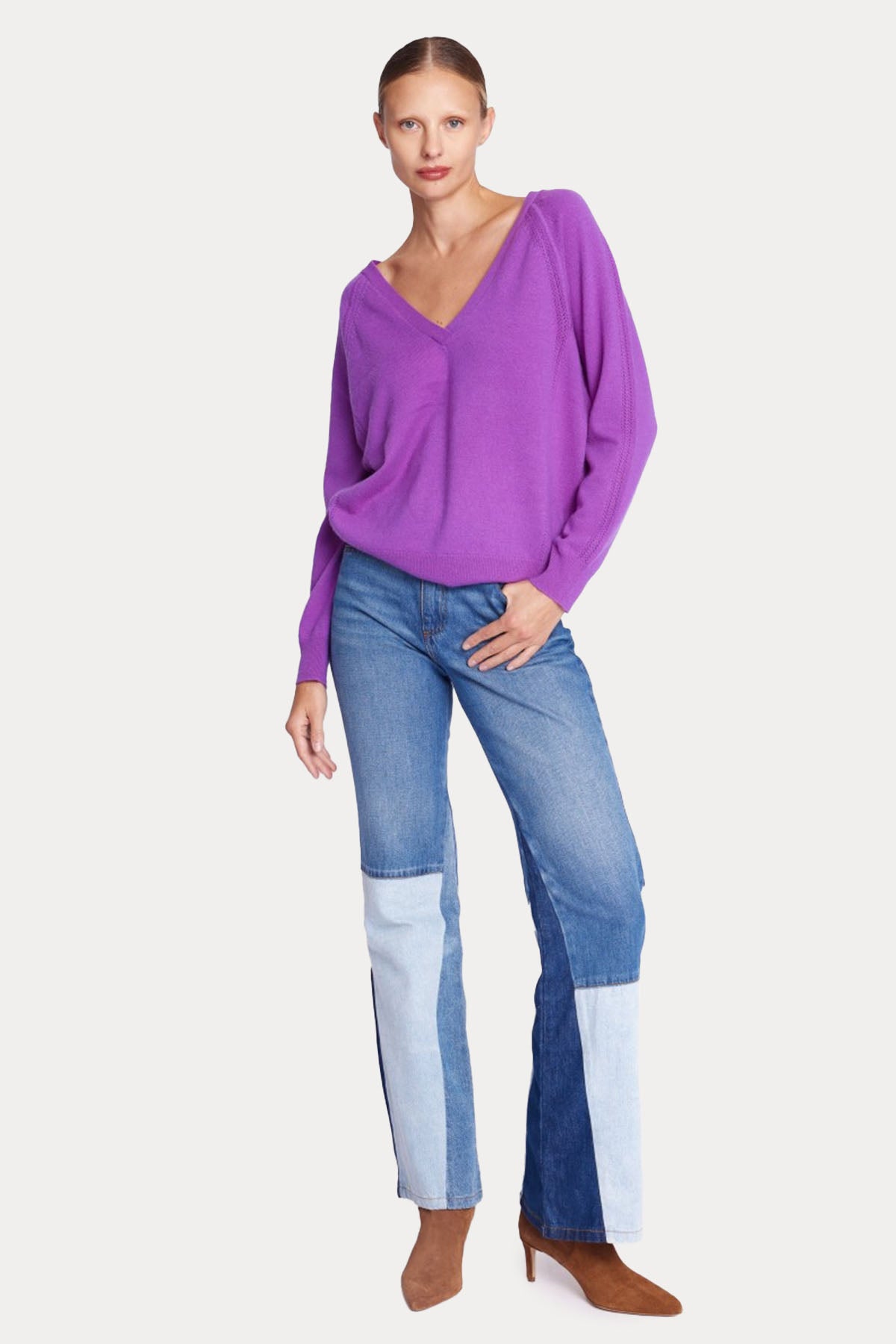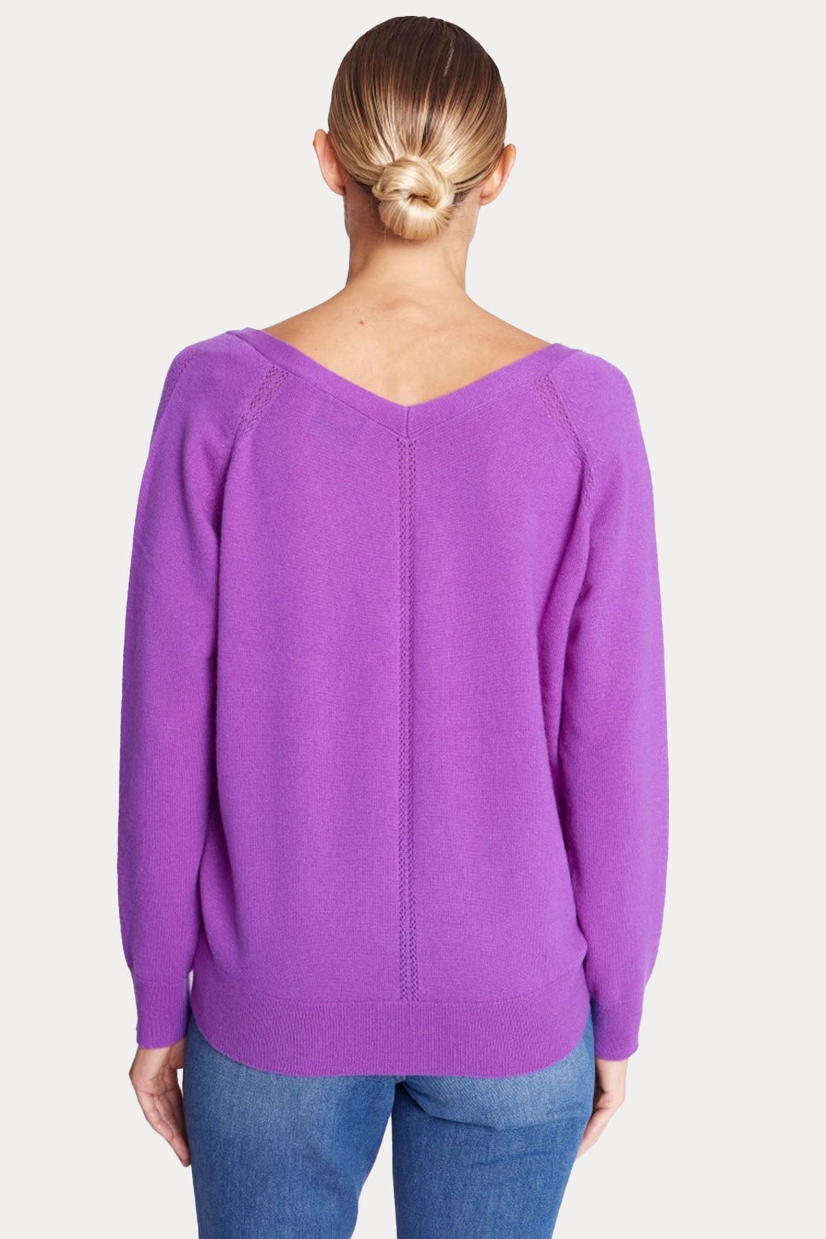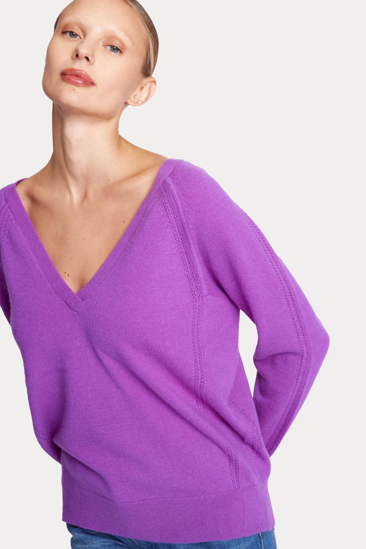 - Geniş V yaka uzun kollu triko.