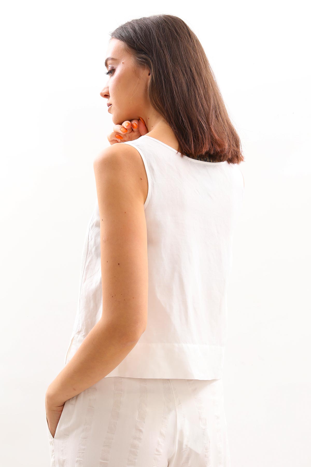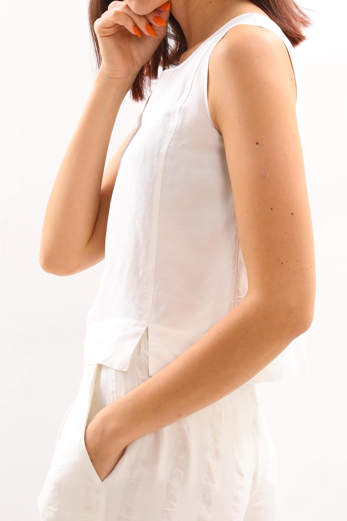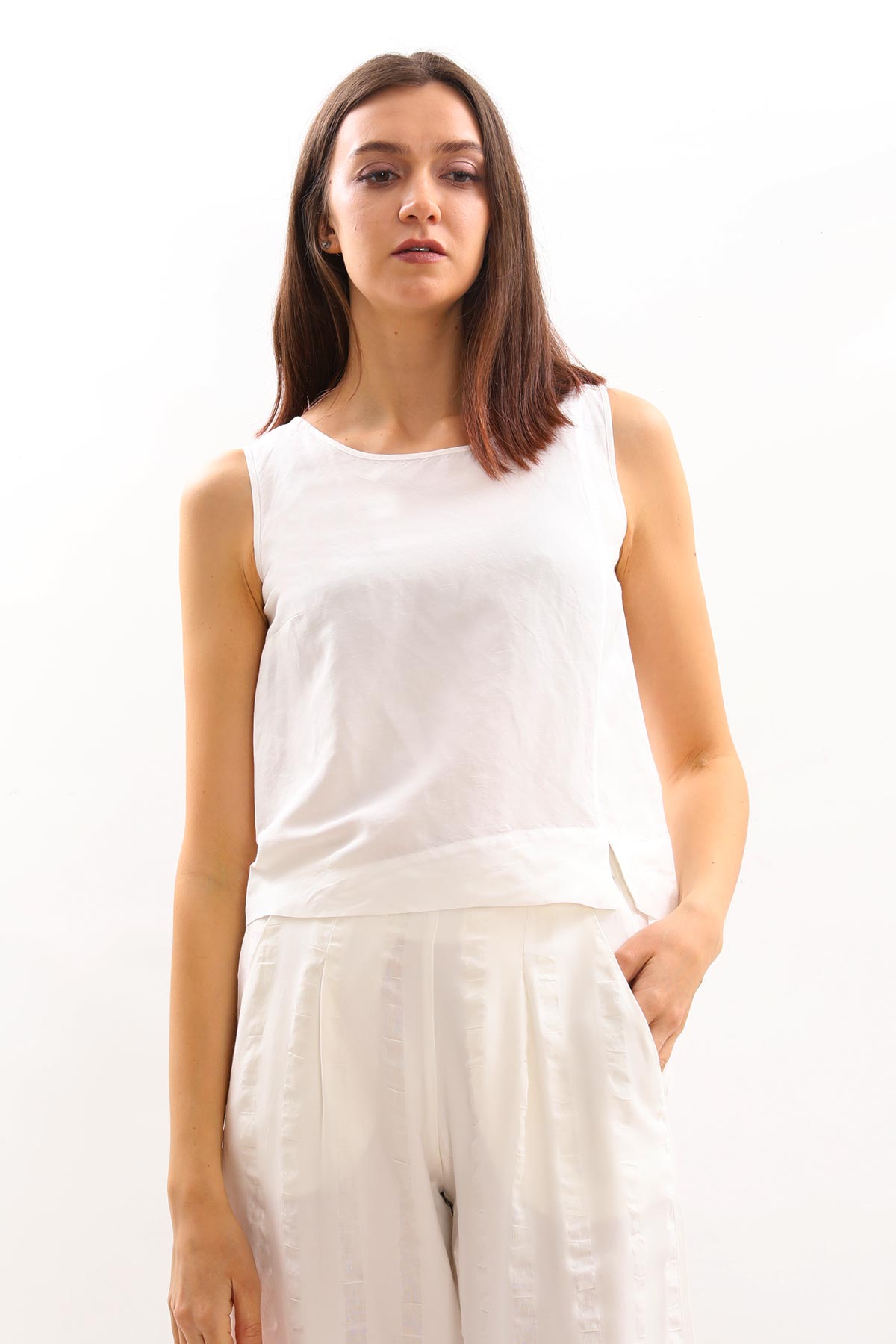 - Yuvarlak yaka, kalın askılı kolsuz bluz.