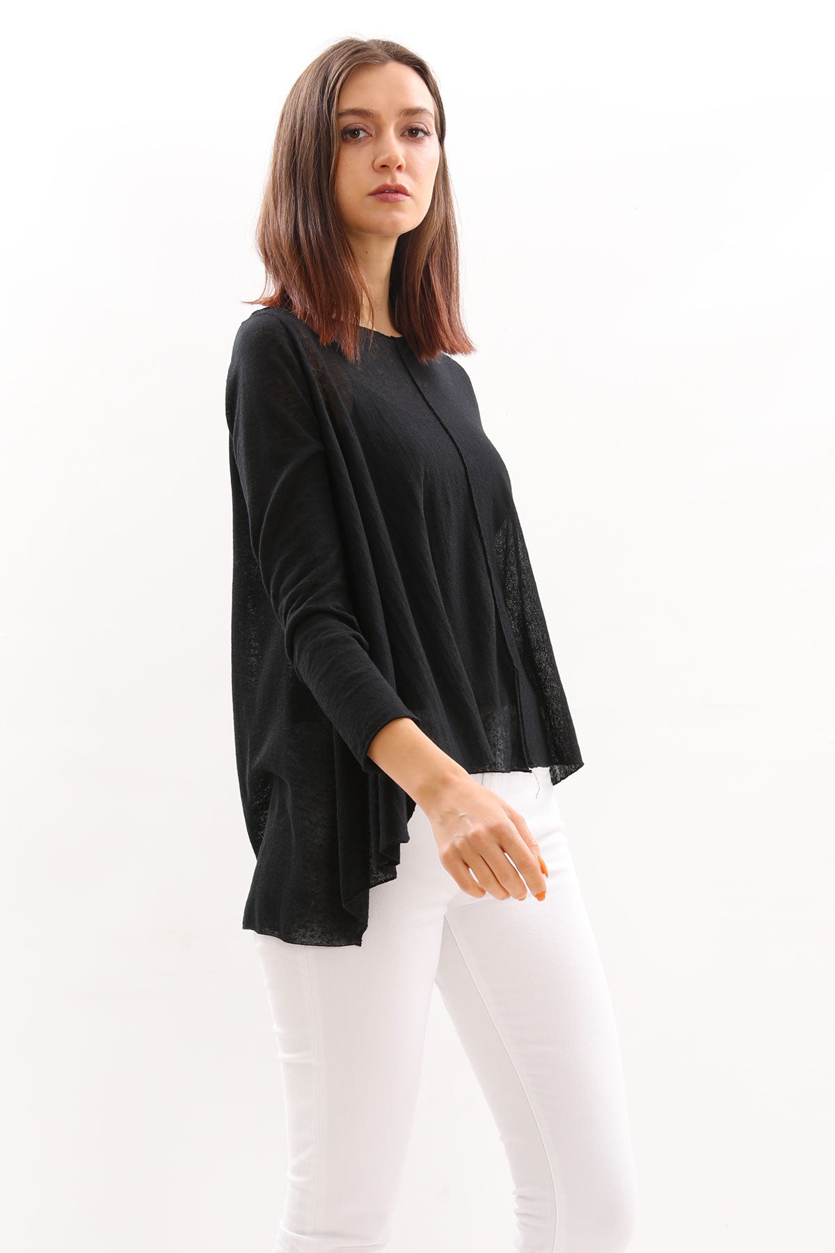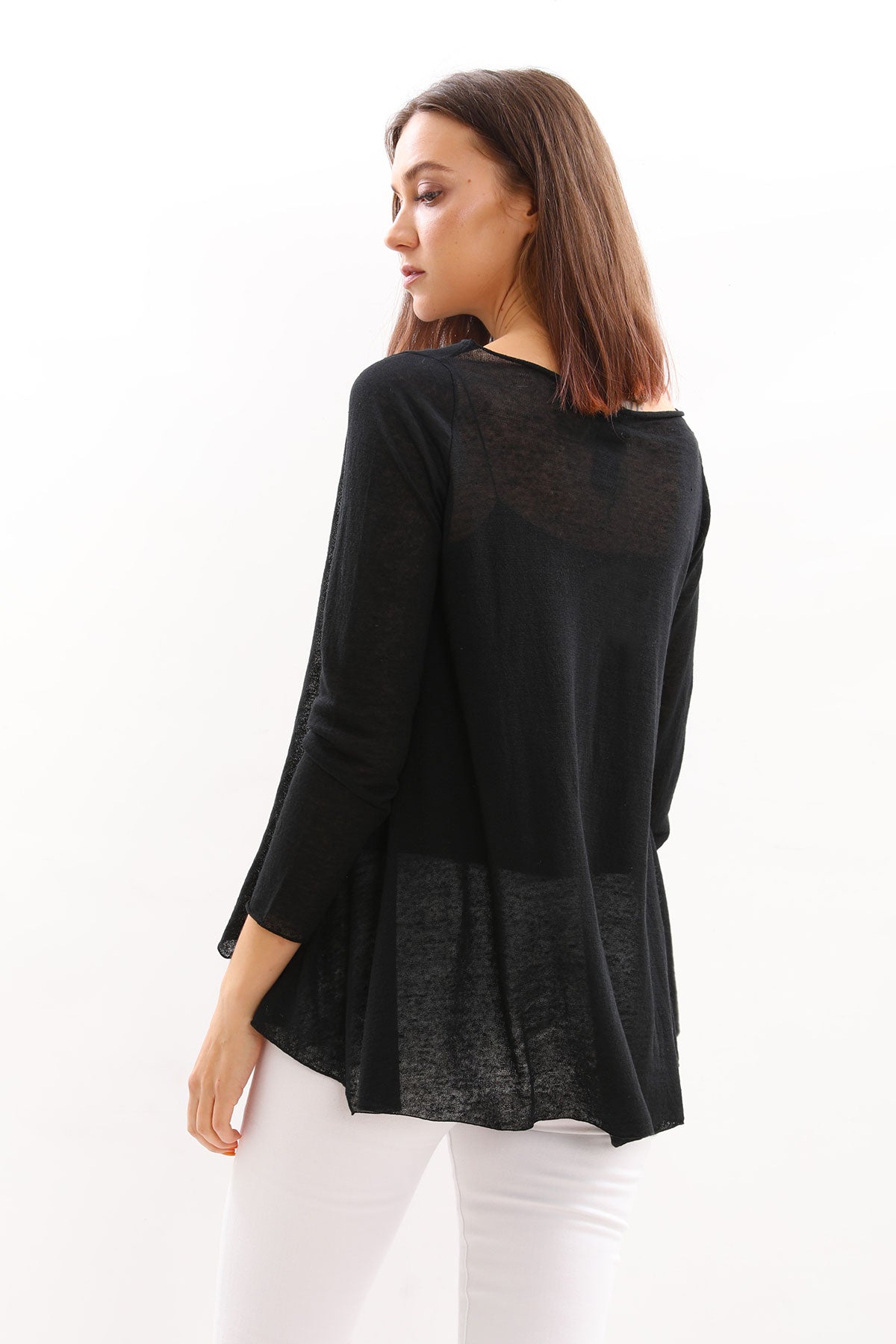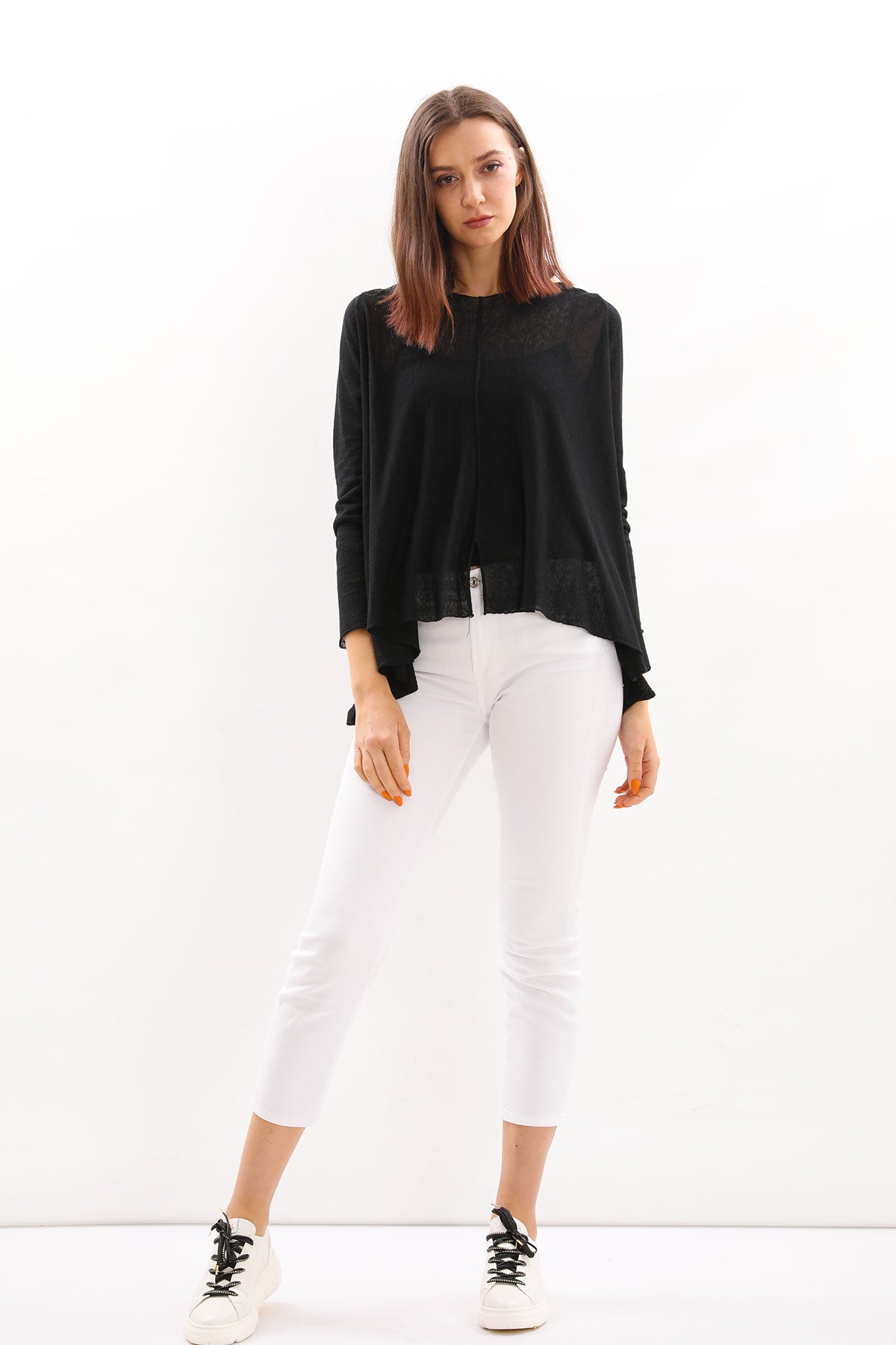- Ön kısmında kalın dikiş geçişi ve ufak yırtmaç detayı.