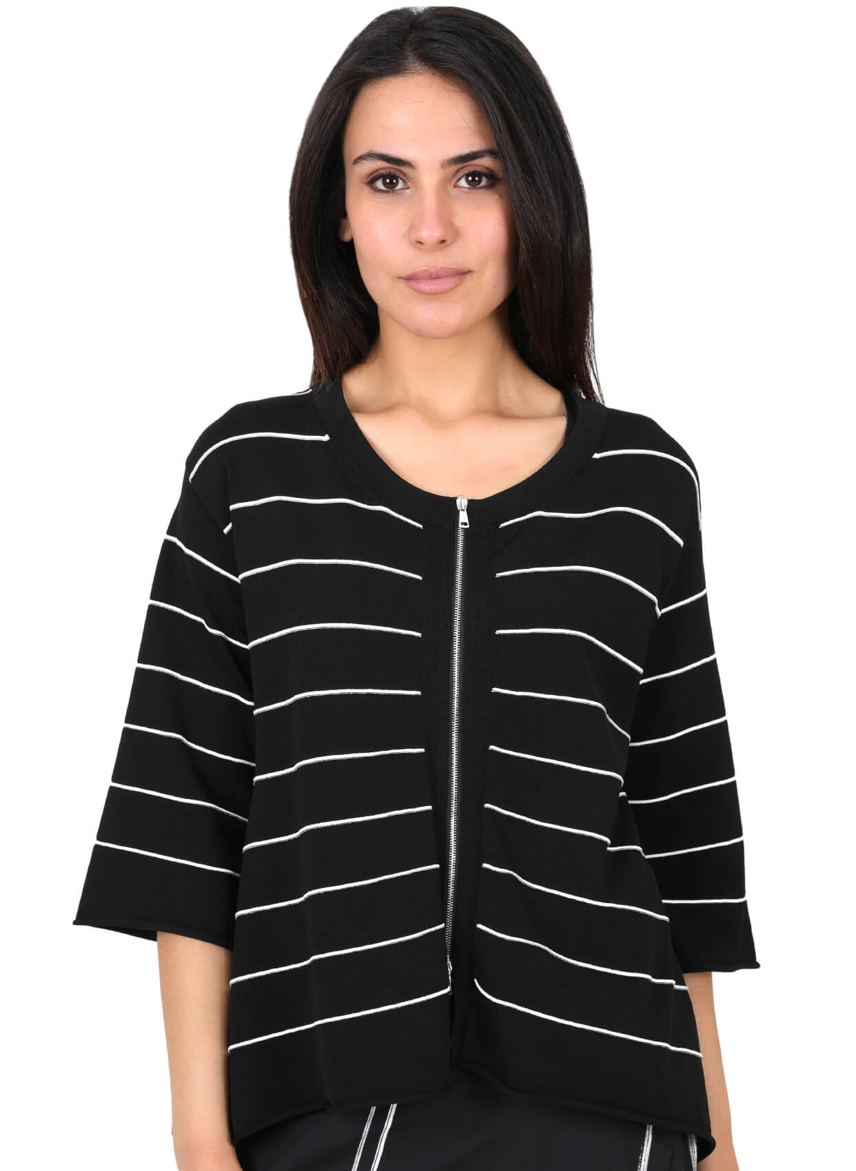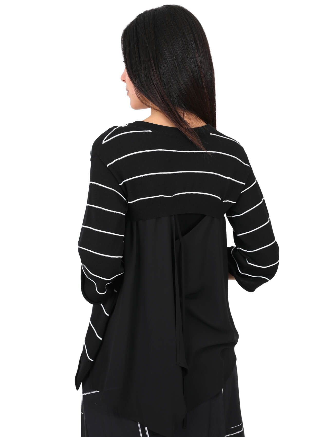 - İki kumaş kombinasyonu arası minik sırt dekoltesi.