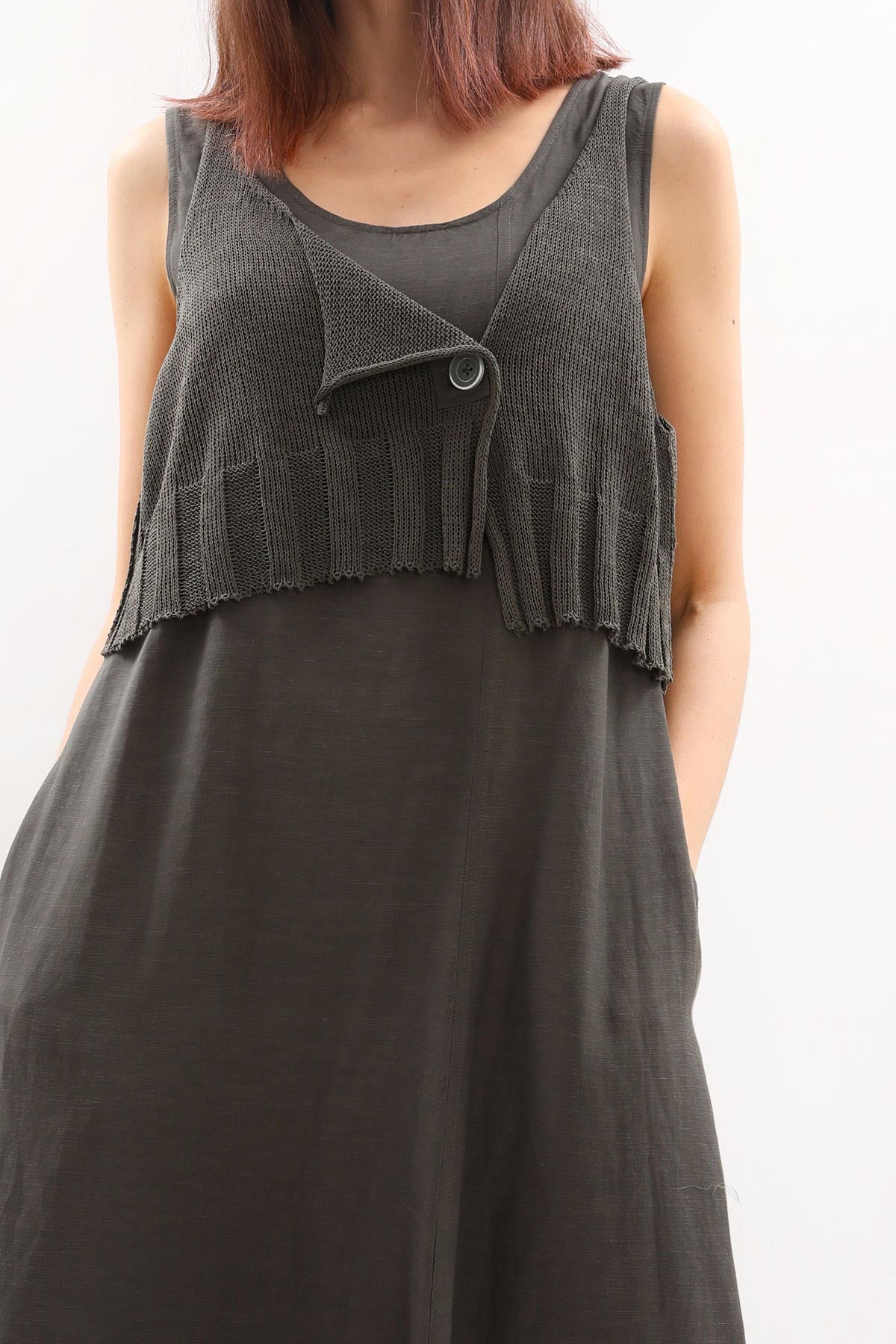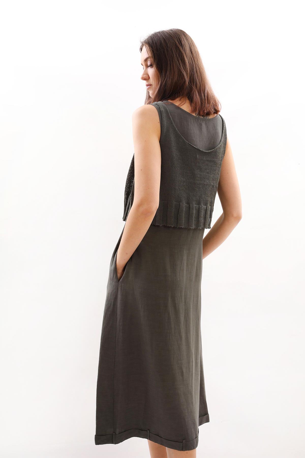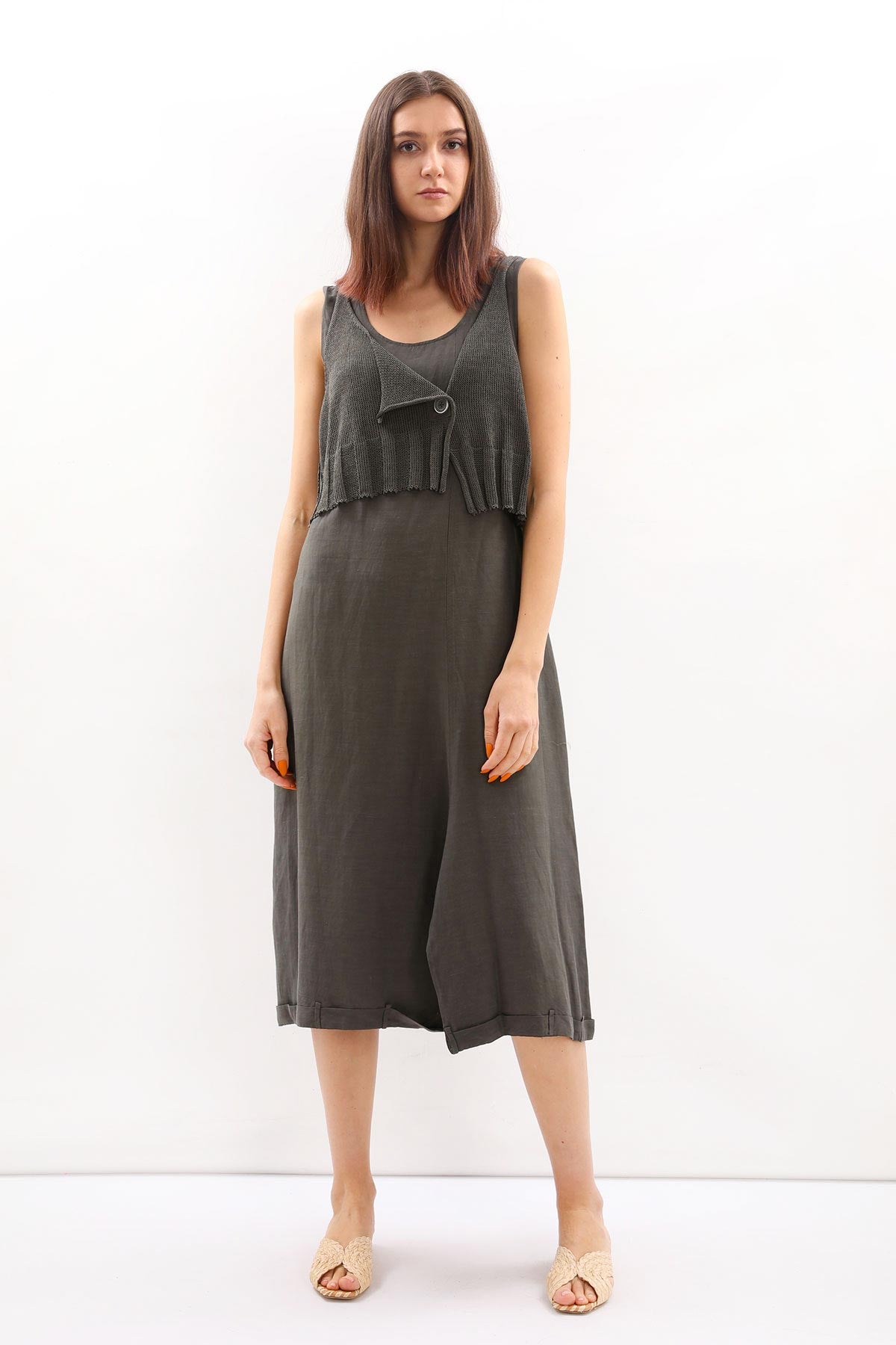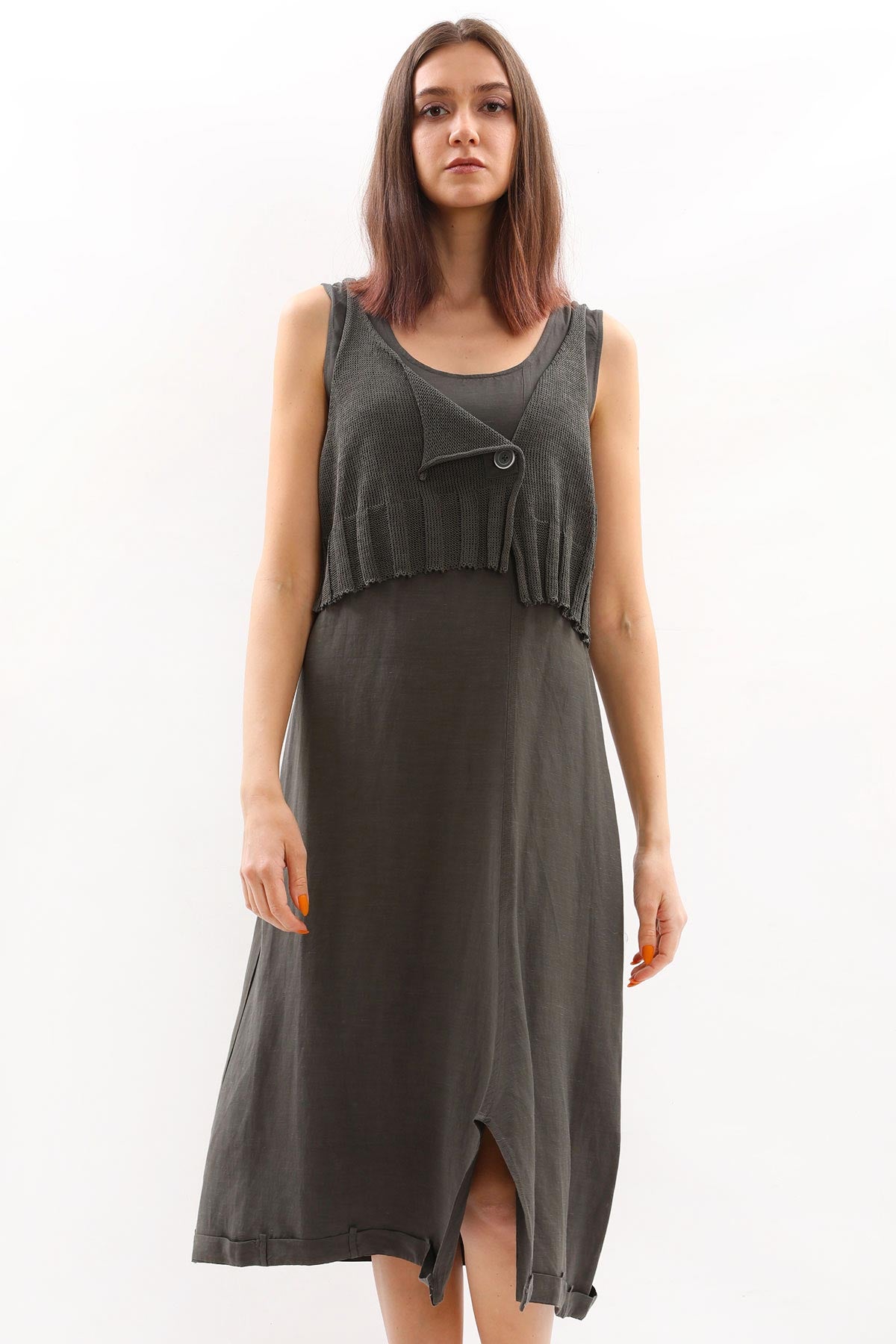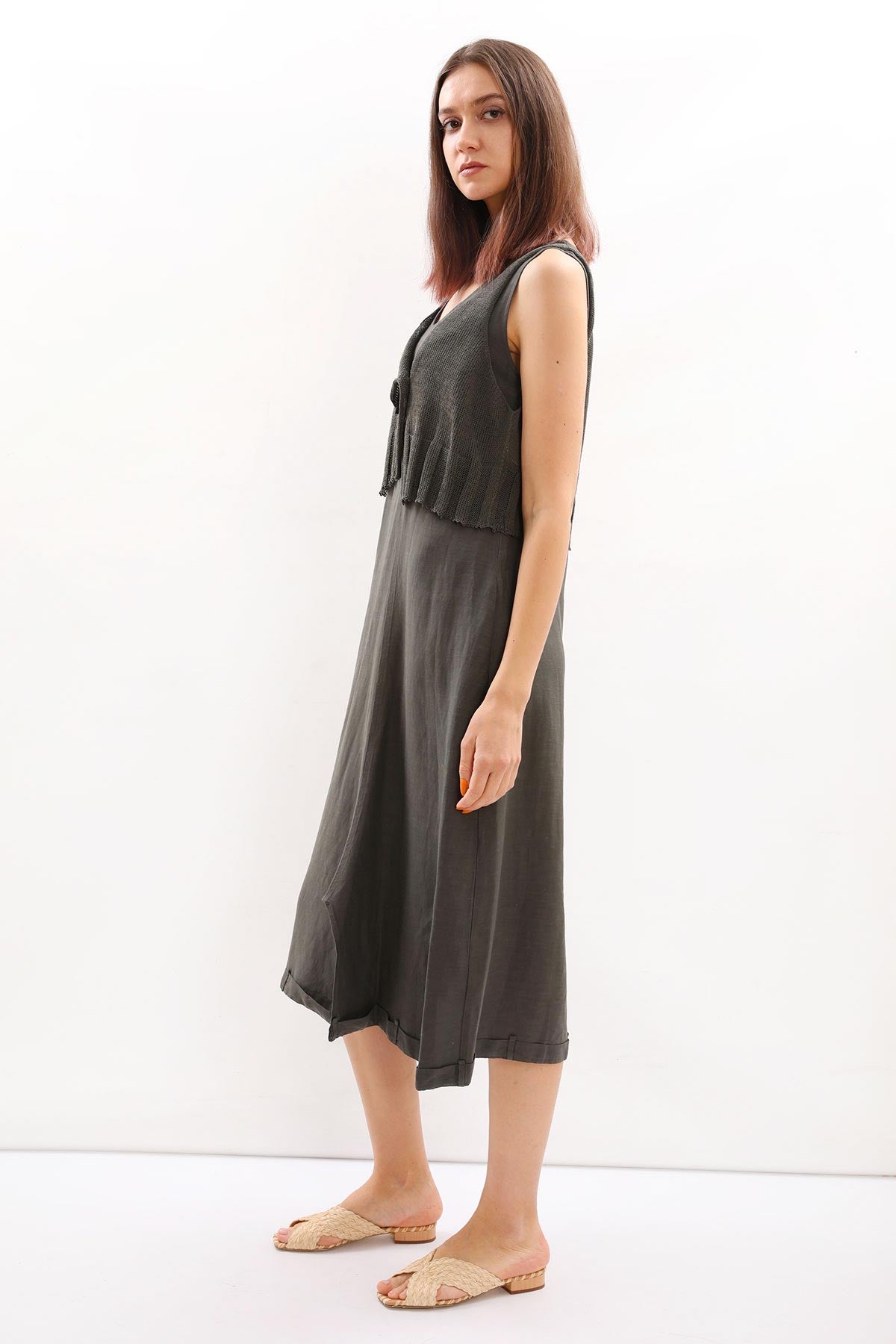 - Kalın askılı, örme detaylı Crea Concept elbise.