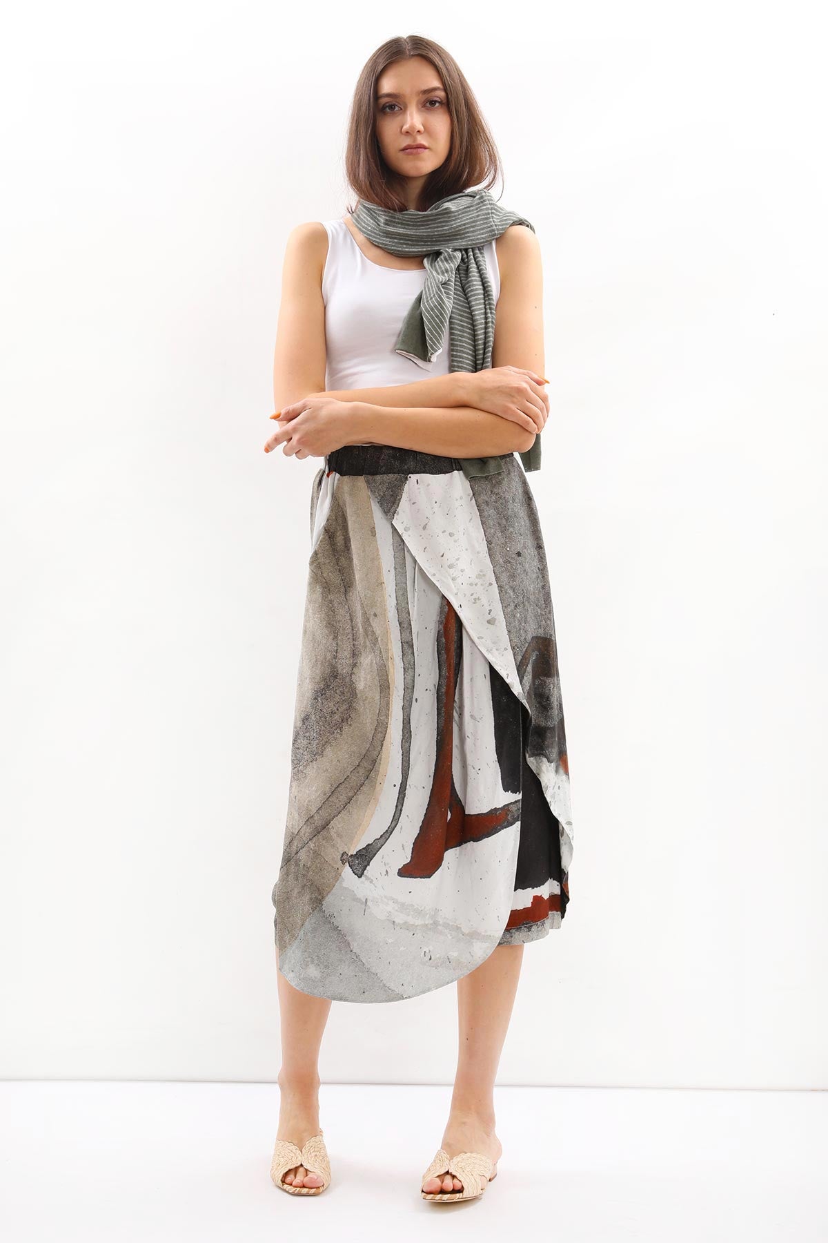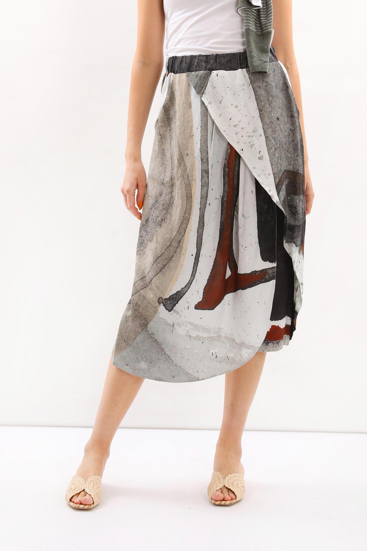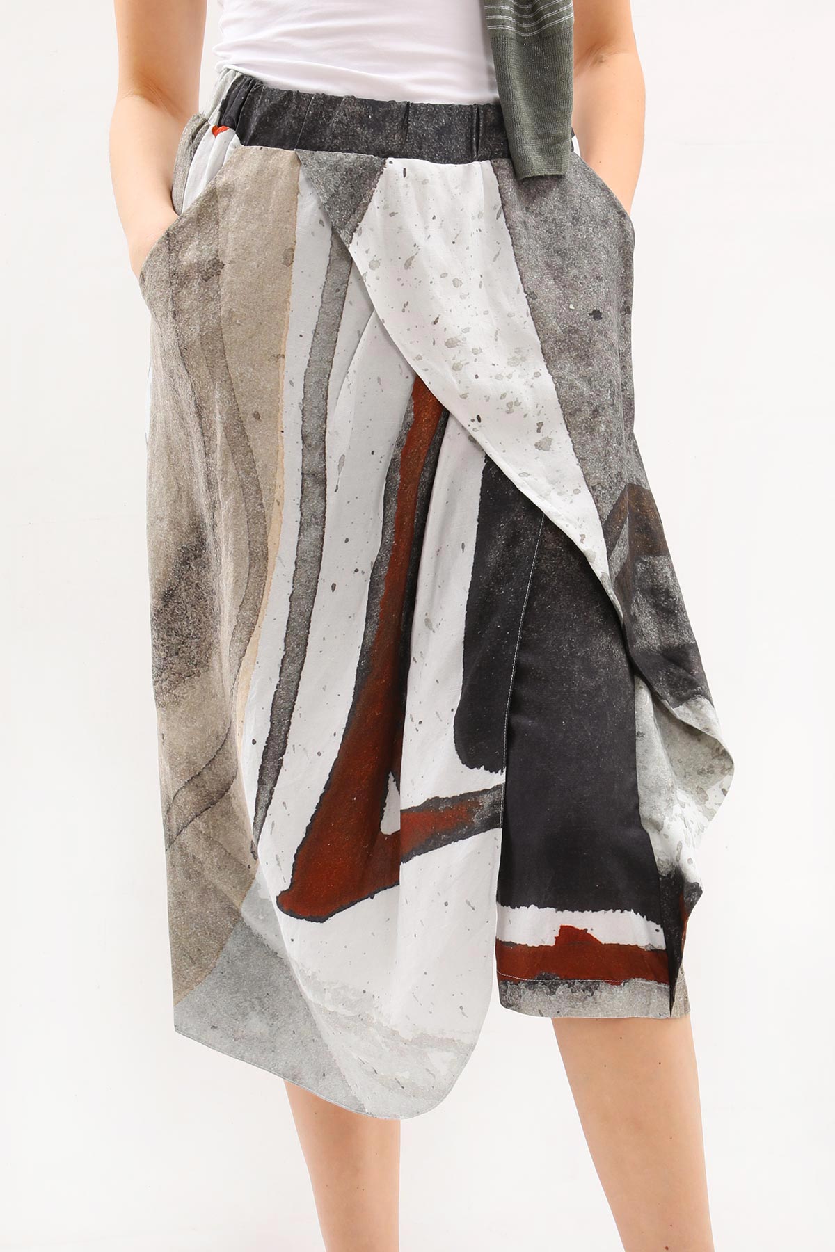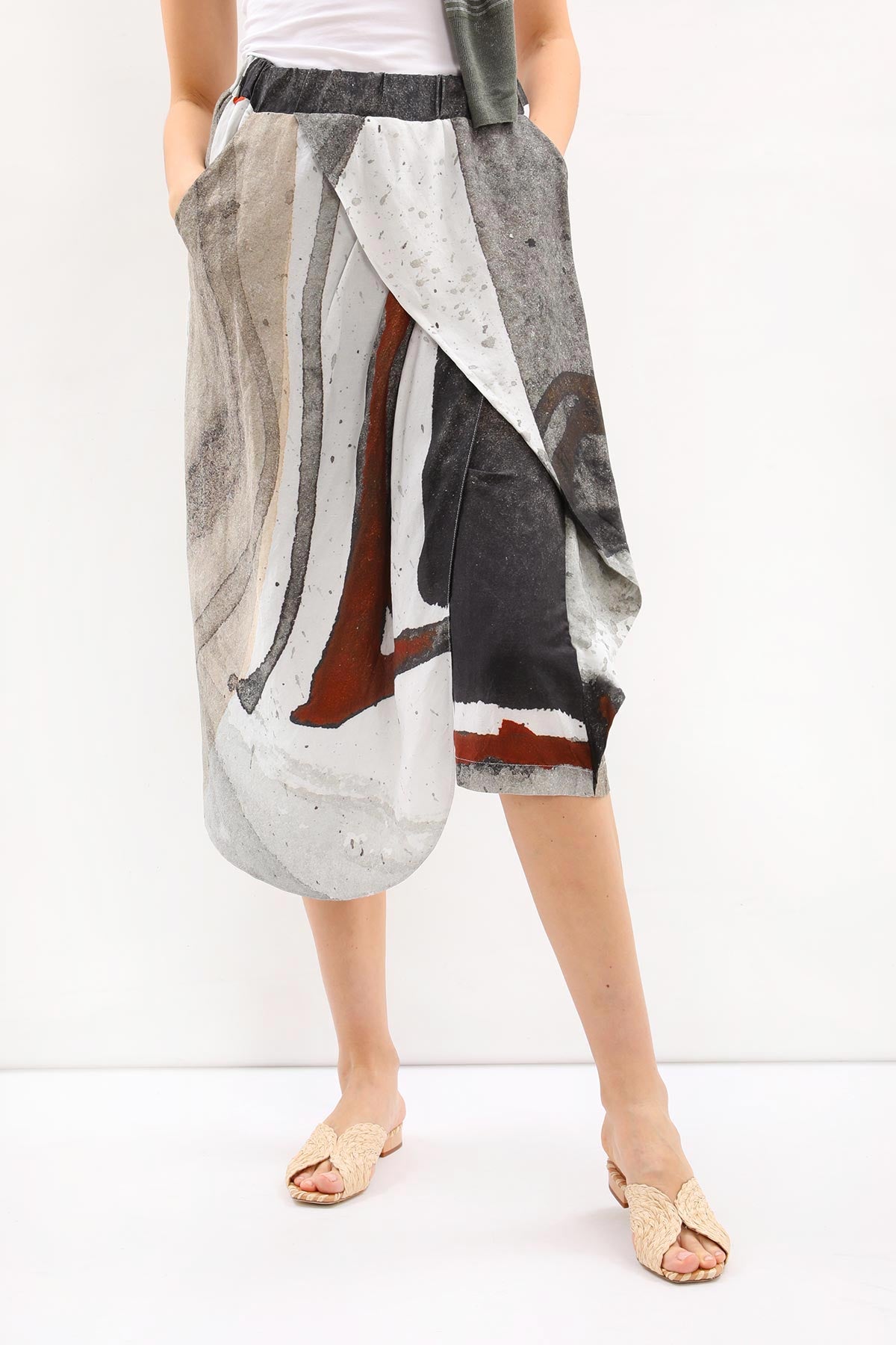 - Beli lastikli, desenli Crea Concept şort etek.