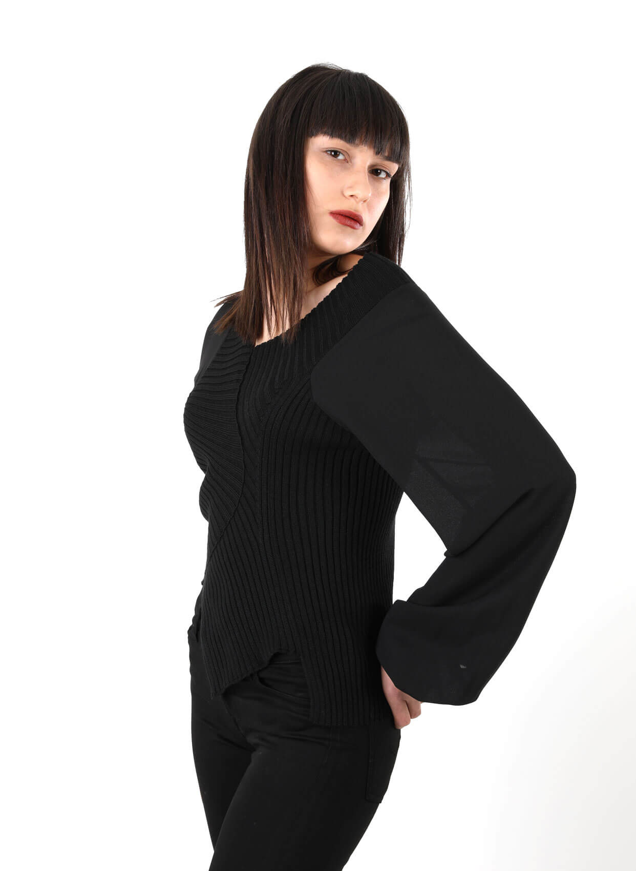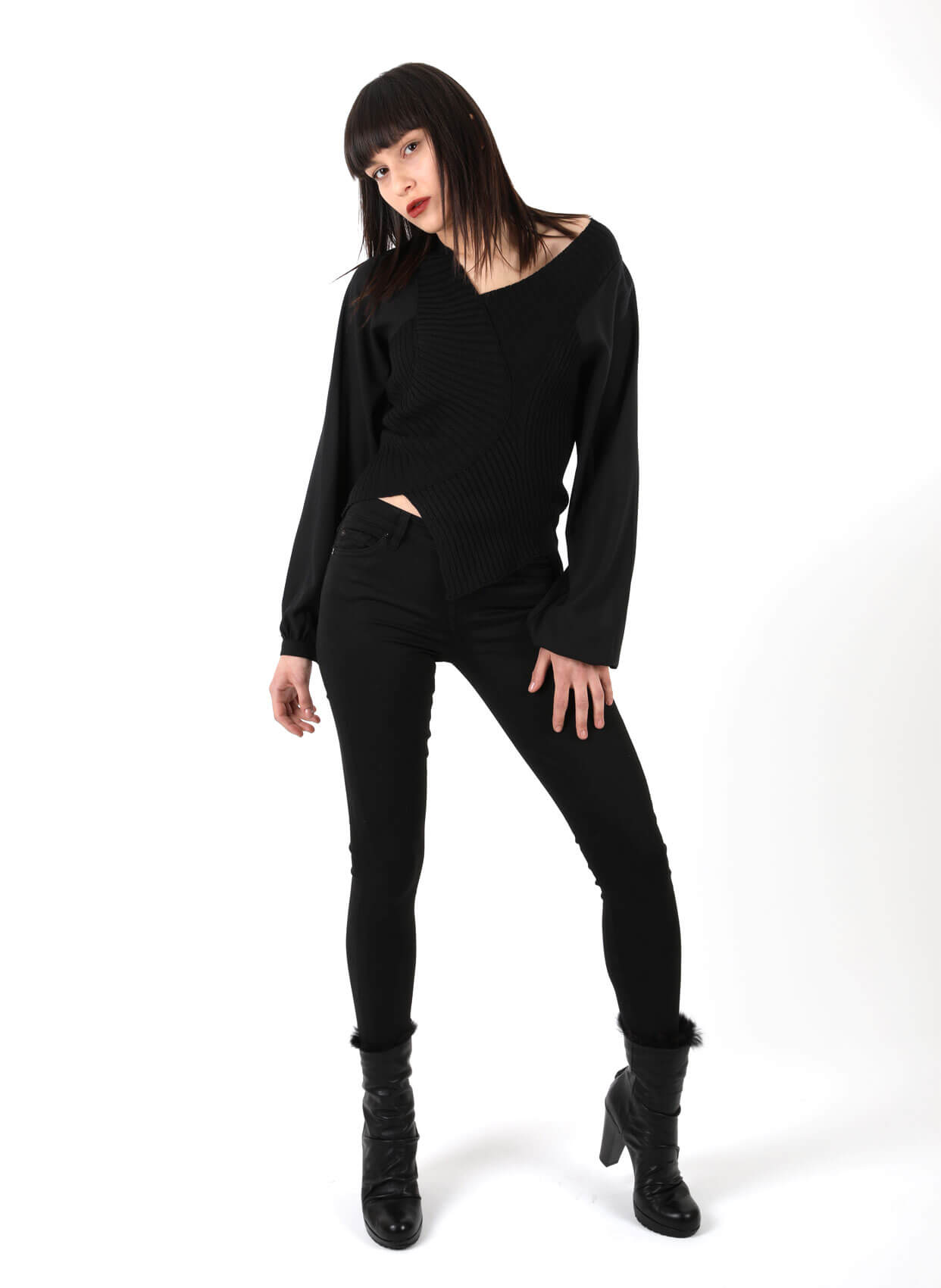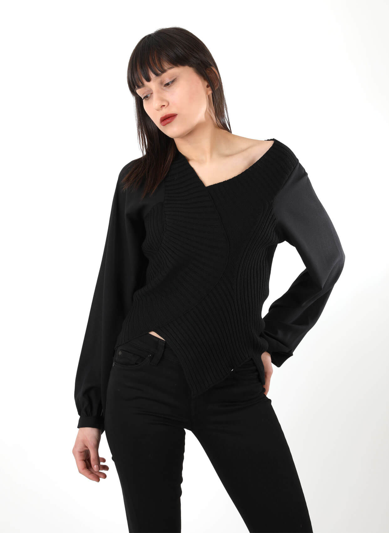 - V yaka sağ omzu düşük triko