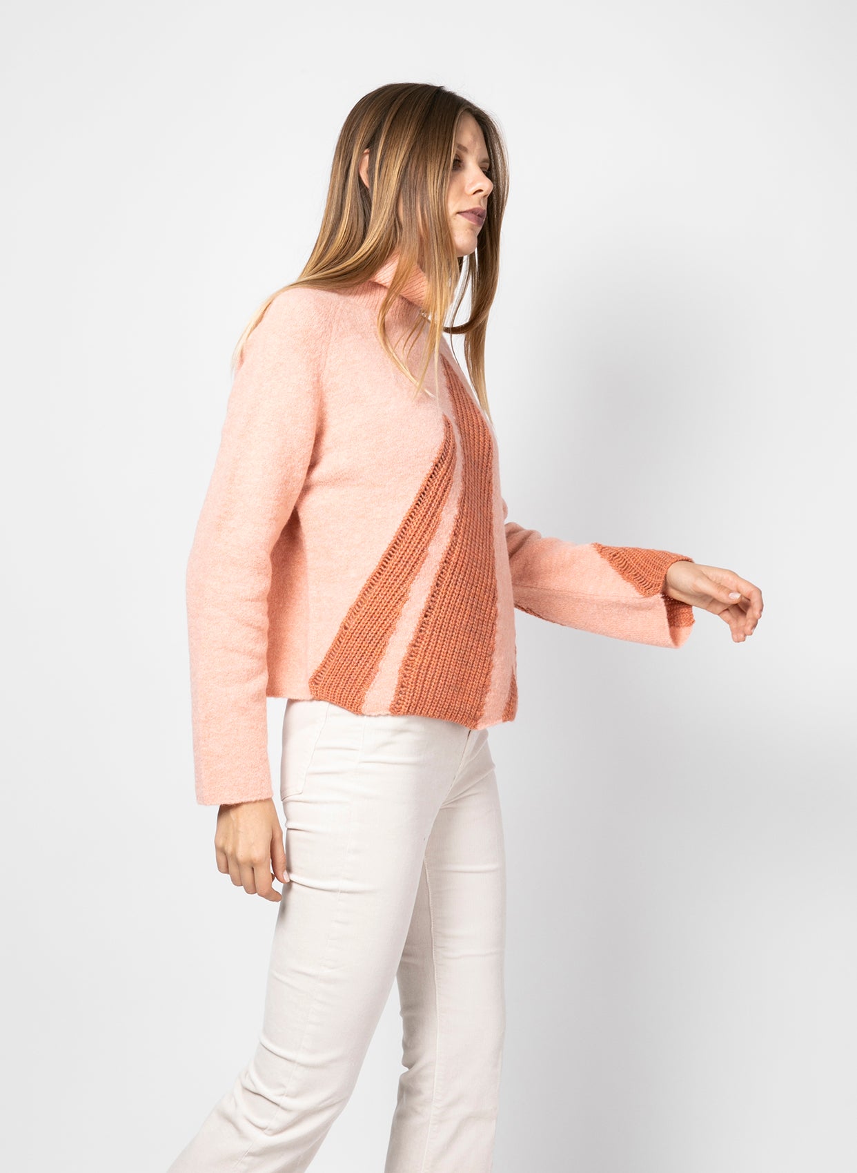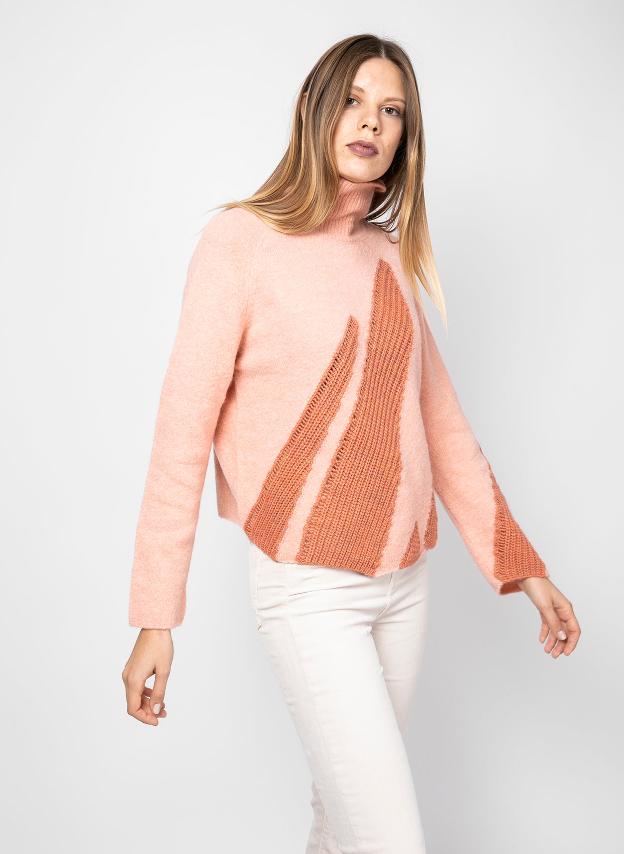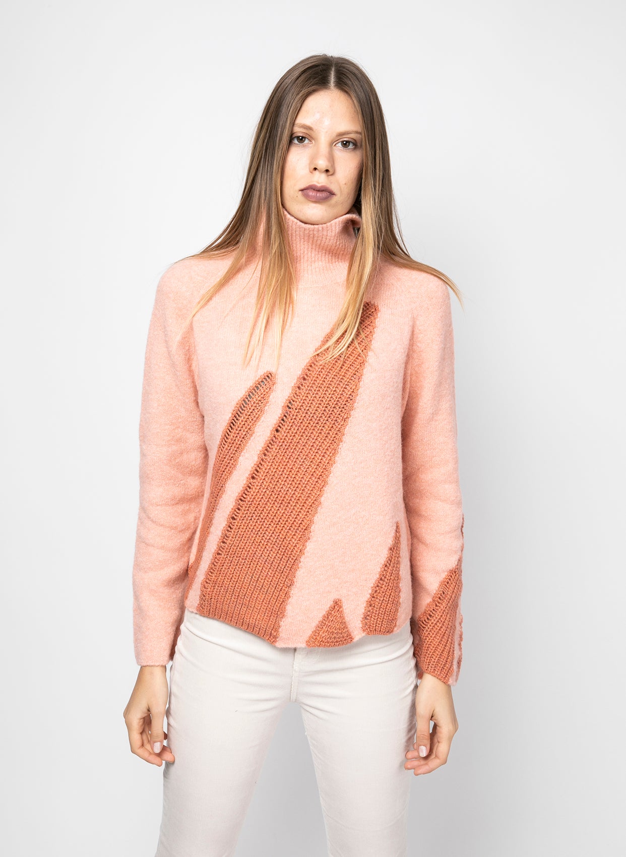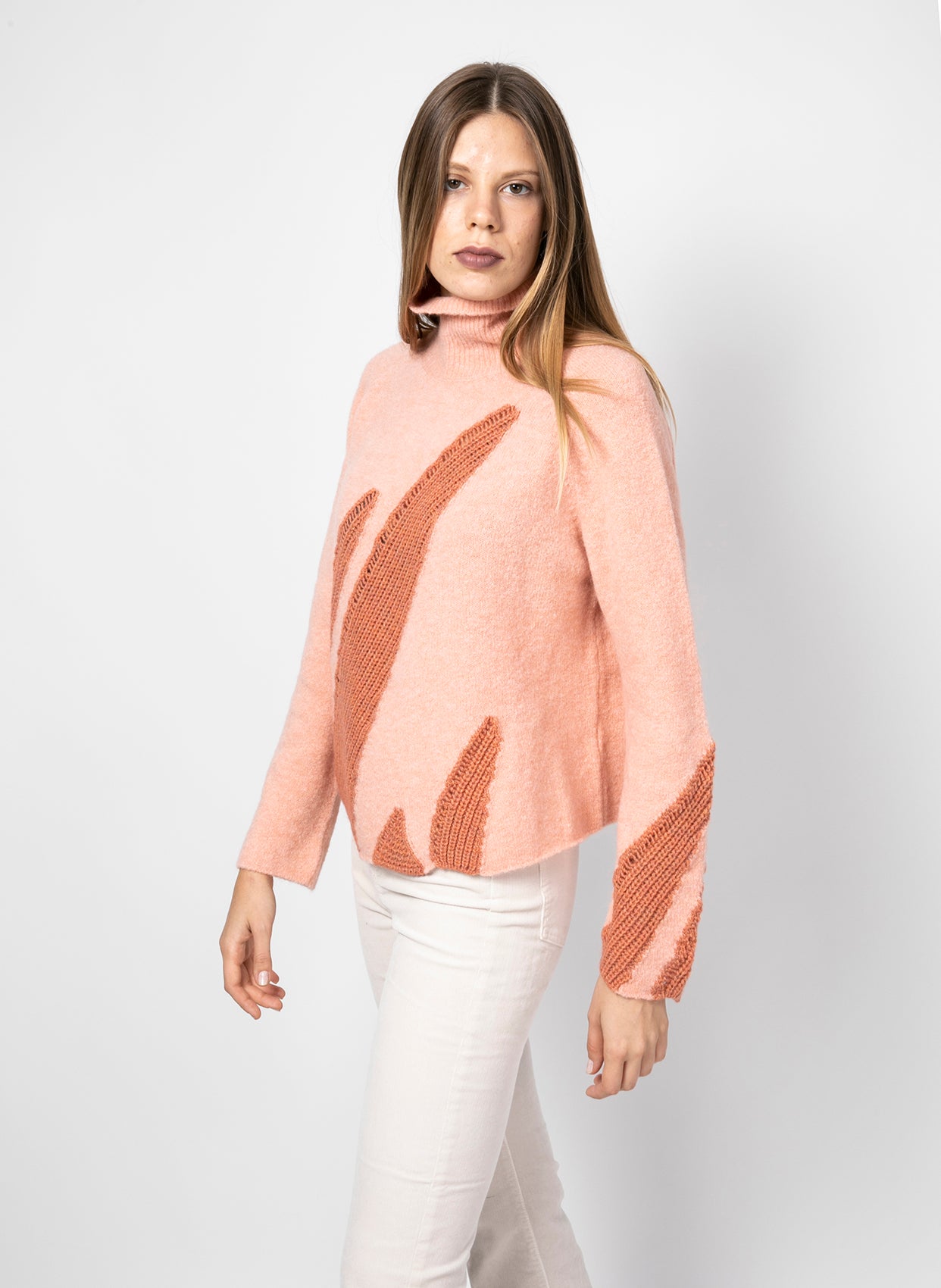 - Ön kısmında örgü işlemeli desen.