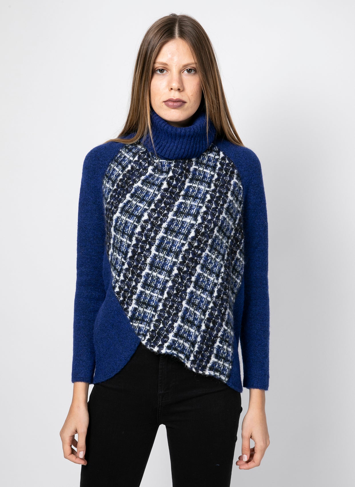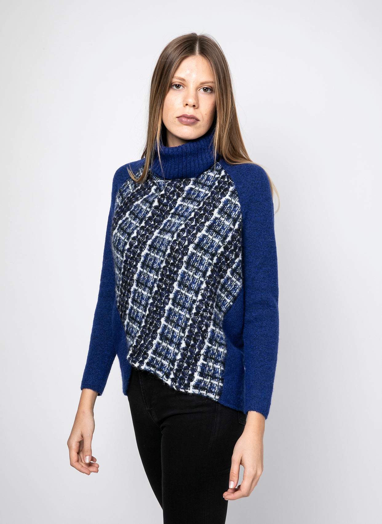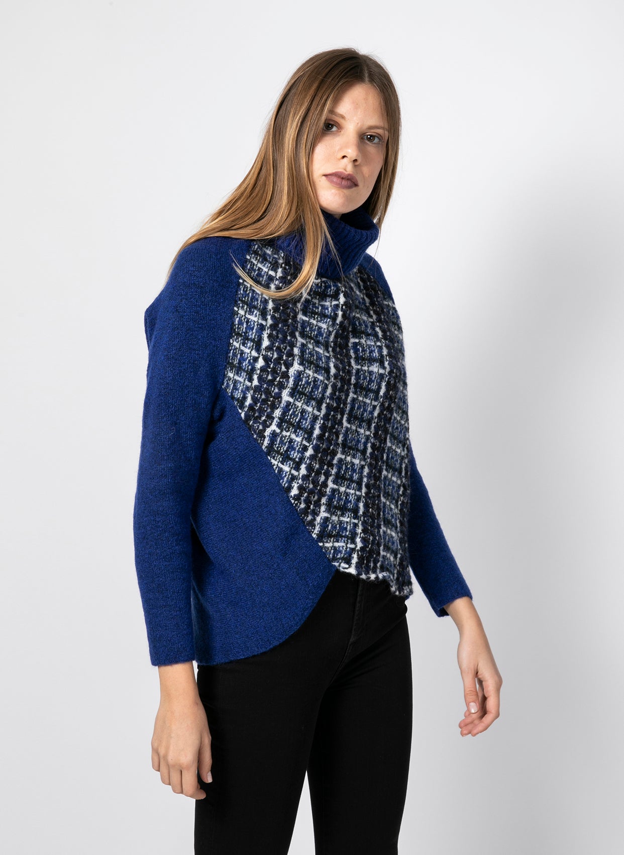 - Katlanabilir boğazlı yaka, uzun kollu triko.