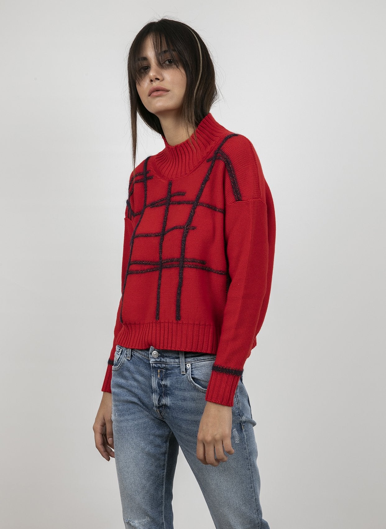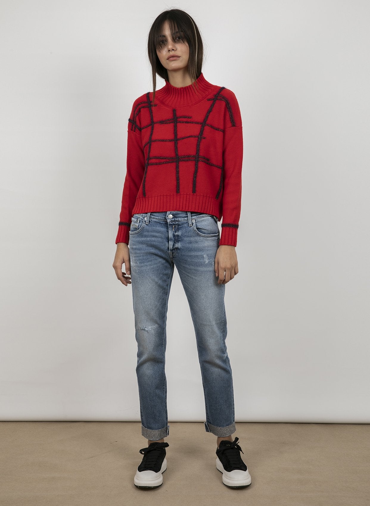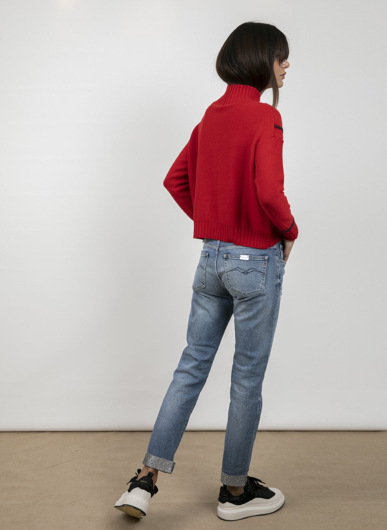 - Yuvarlak yaka uzun kollu triko.