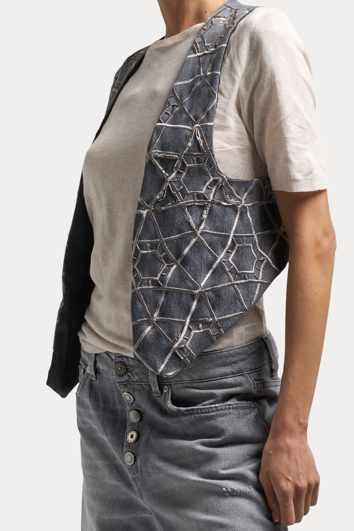 Dondup Boncuk Aksesuarlı Nakışlı Yelek