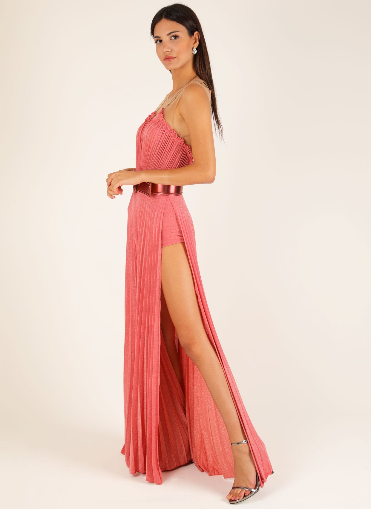 - Yanda derin yırtmaç detayı ve kendinden iç eteği mevcuttur.