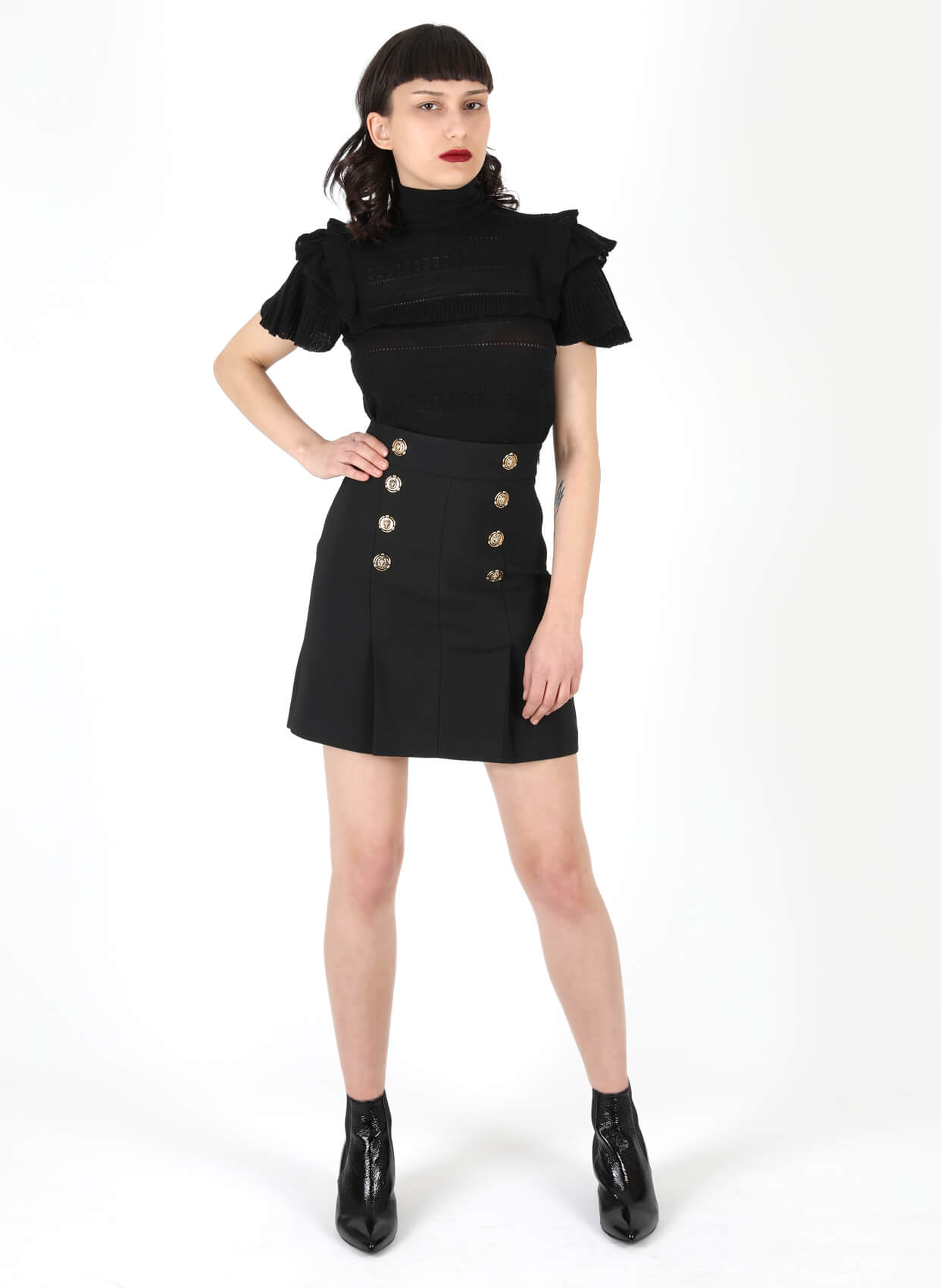 - Kruvaze pileli yüksek bel etek