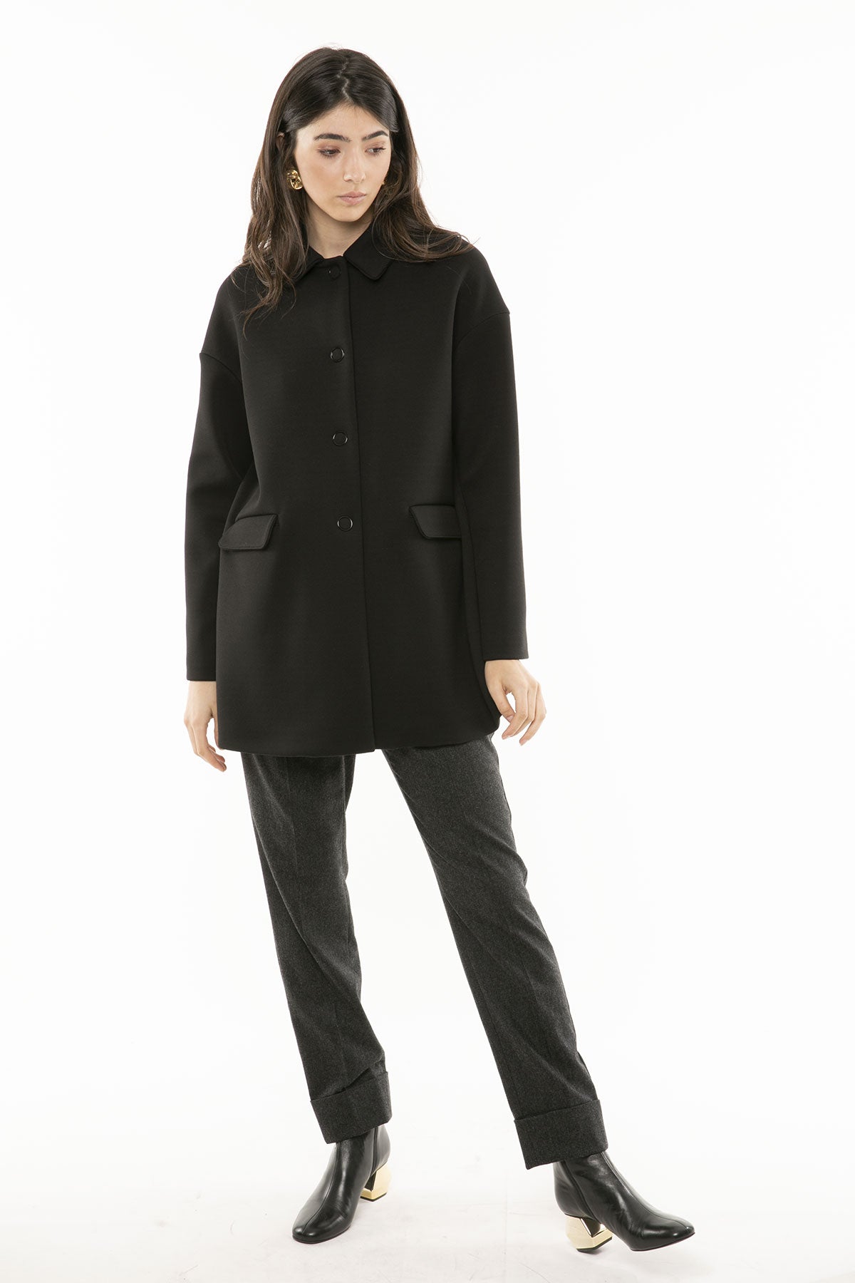 - Büyük çıtçıt düğme kapatmalı ön kısım.