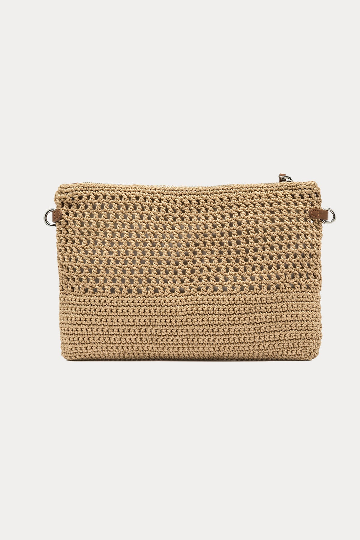 - Bu yepyeni Victoria clutch çantası örgü işi kumaştan üretilmiştir ve deri detaylarla zenginleştirilmiş temiz çizgilere sahiptir.