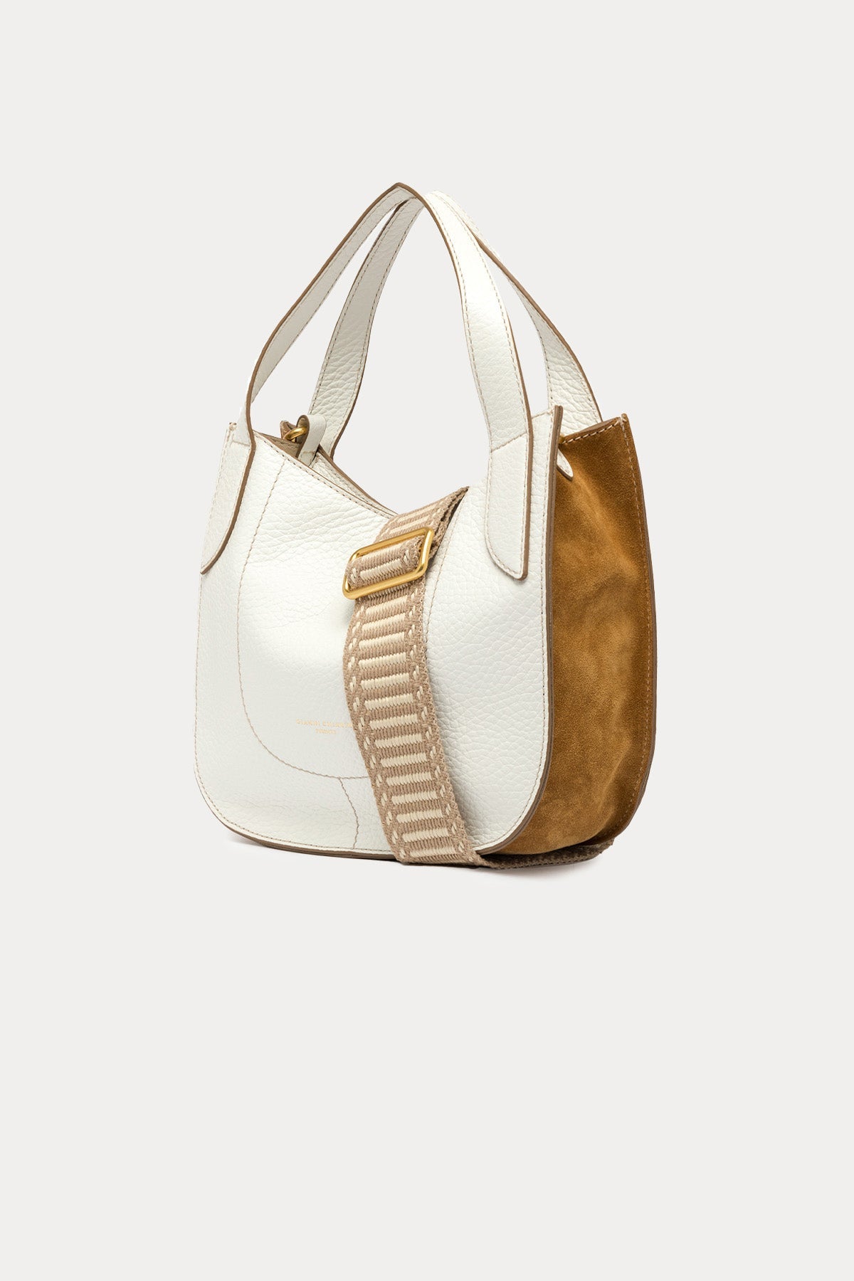- Maksi sırçalı deriden üretilmiş, çapraz veya omuzda kullanılabilen Lucrezia çanta, süet kontrast yan panele sahiptir.