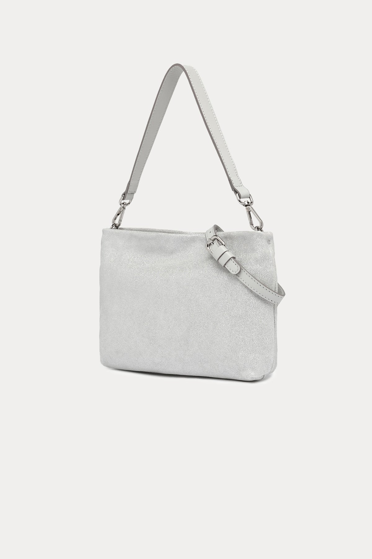 - Gianni Chiarini'nin en çok satan ürünlerinden biri olan Brenda, çıkarılabilir dokuma sapla zenginleştirilmiş, parıltılı efektli süetten yapılmış bir el çantasıdır