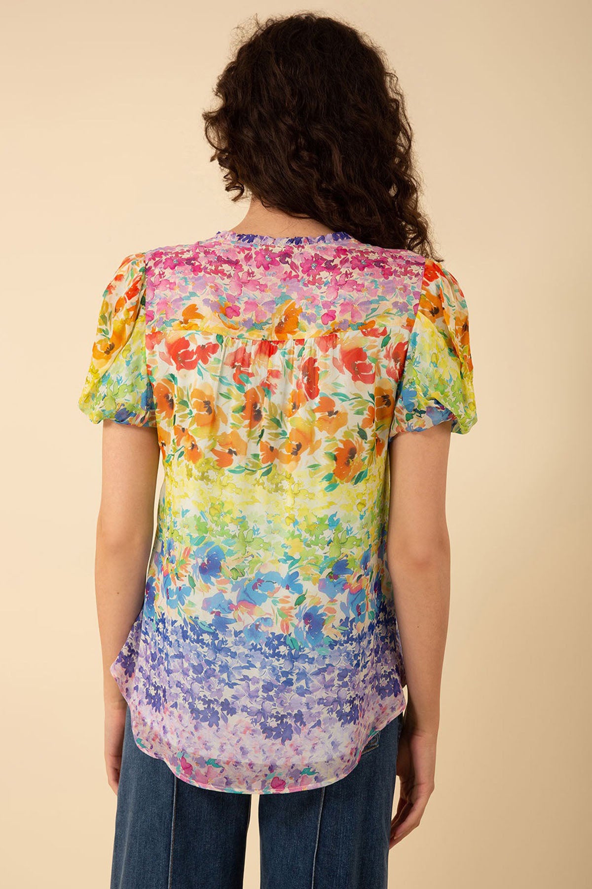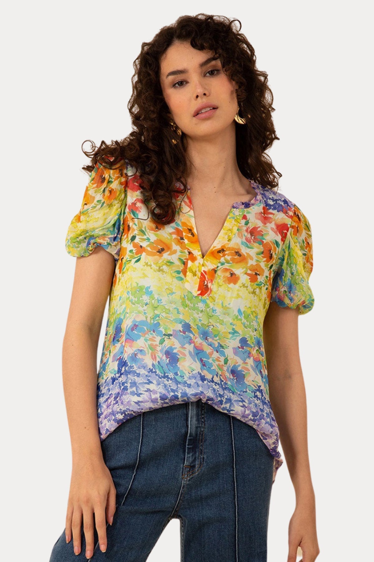 Hale Bob Ana Georgette Renkli Desenli Bluz