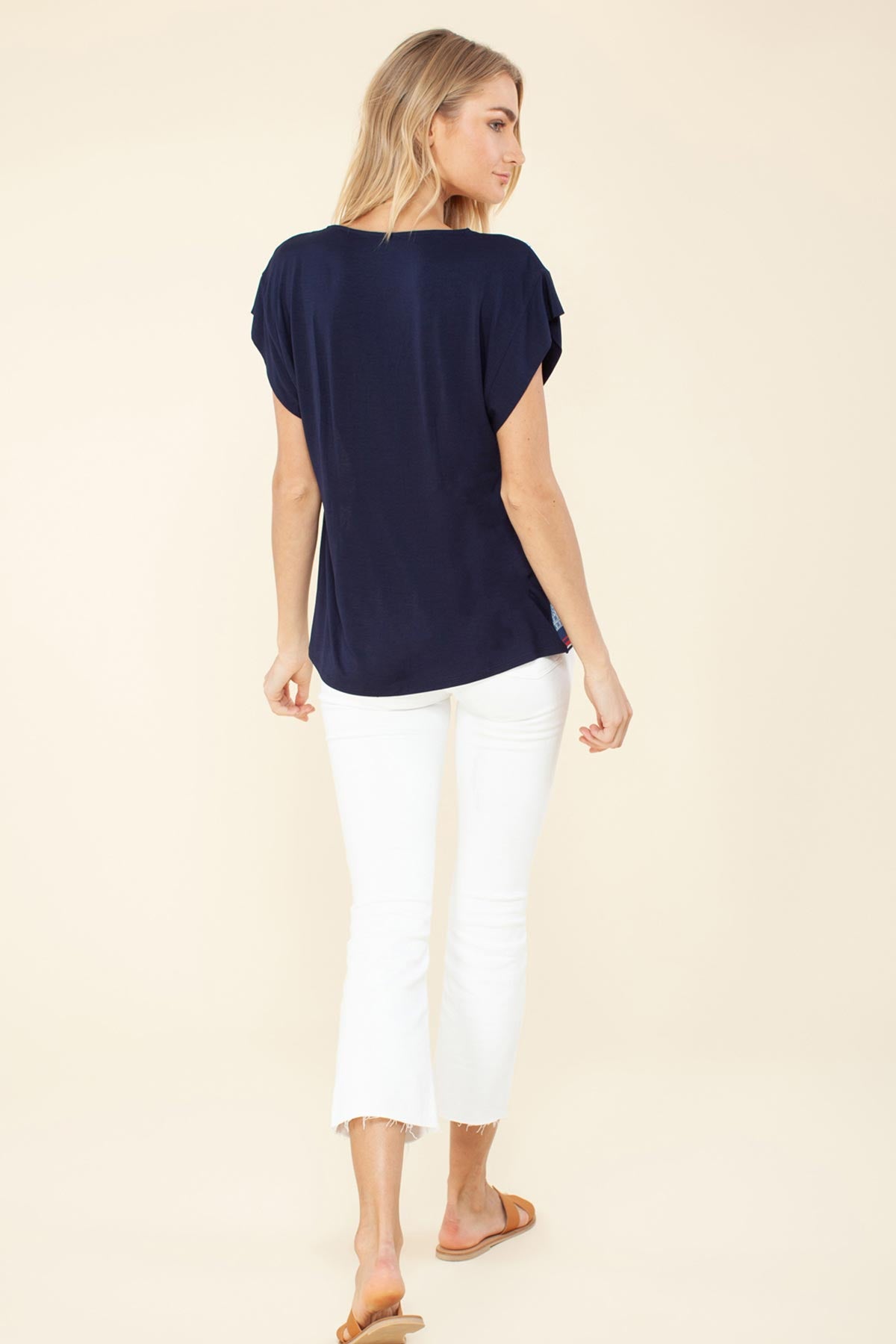 - V yakalı, düşük omuzlu Hale Bob bluz.