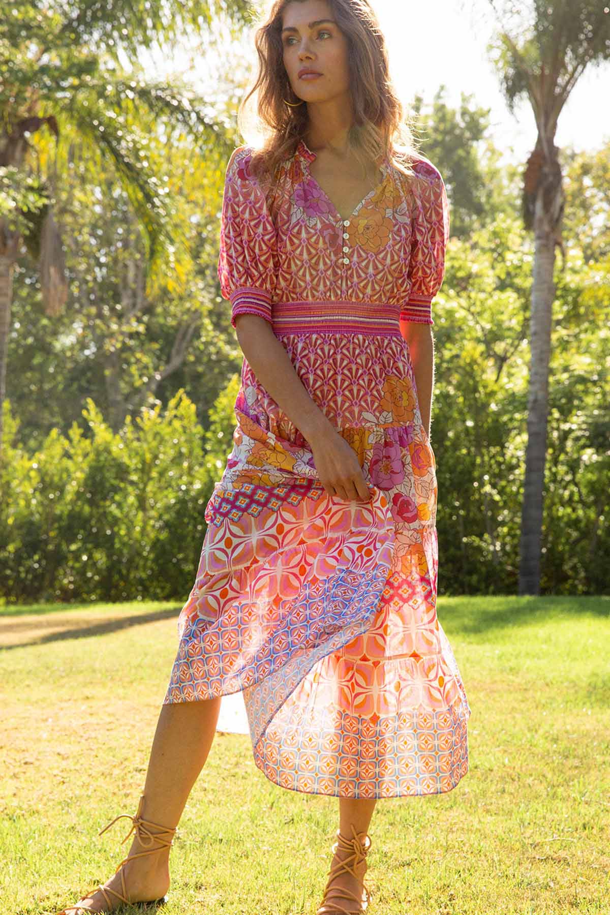 - Fırfırlı elastik hakim V yaka, kısa kollu elbise.