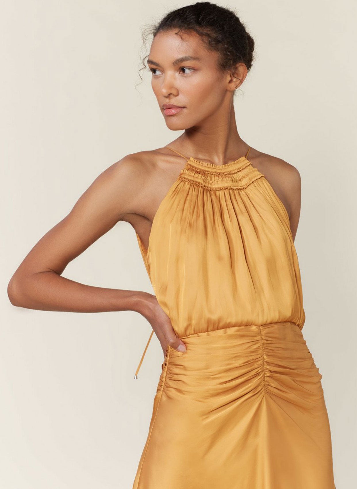 - Halston Heritage elbisesiyle bu parlak hafızada güneş ışığında parlayın.