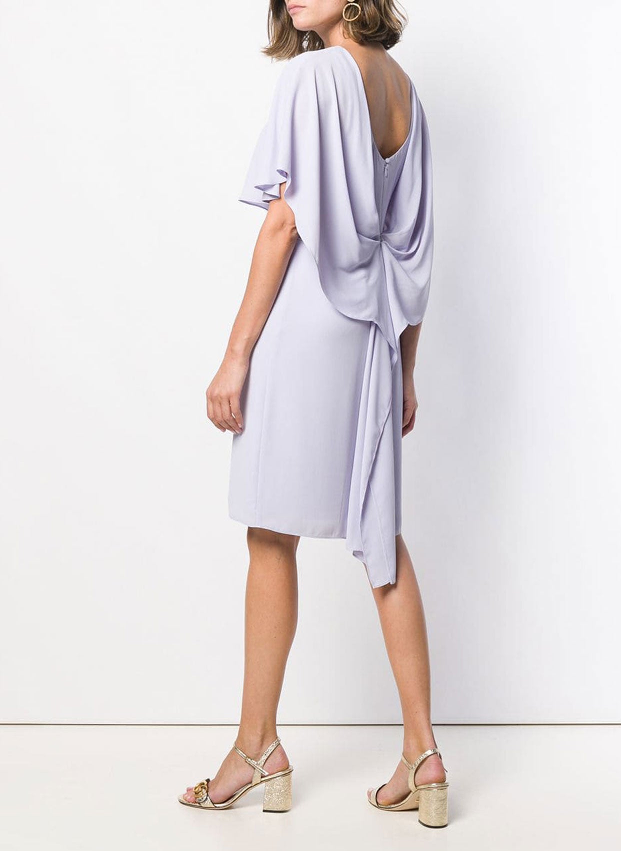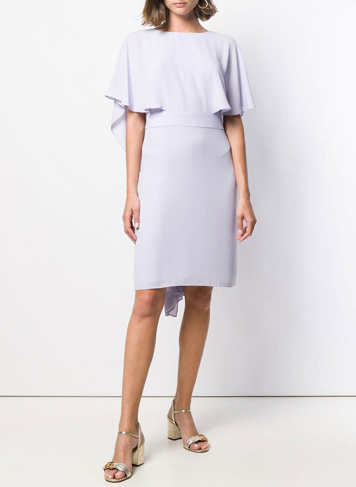 - Halston Heritage'taki lavanta fırfırlı üst üste kayma elbise.