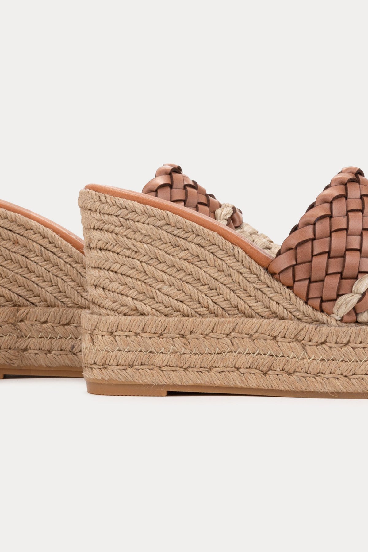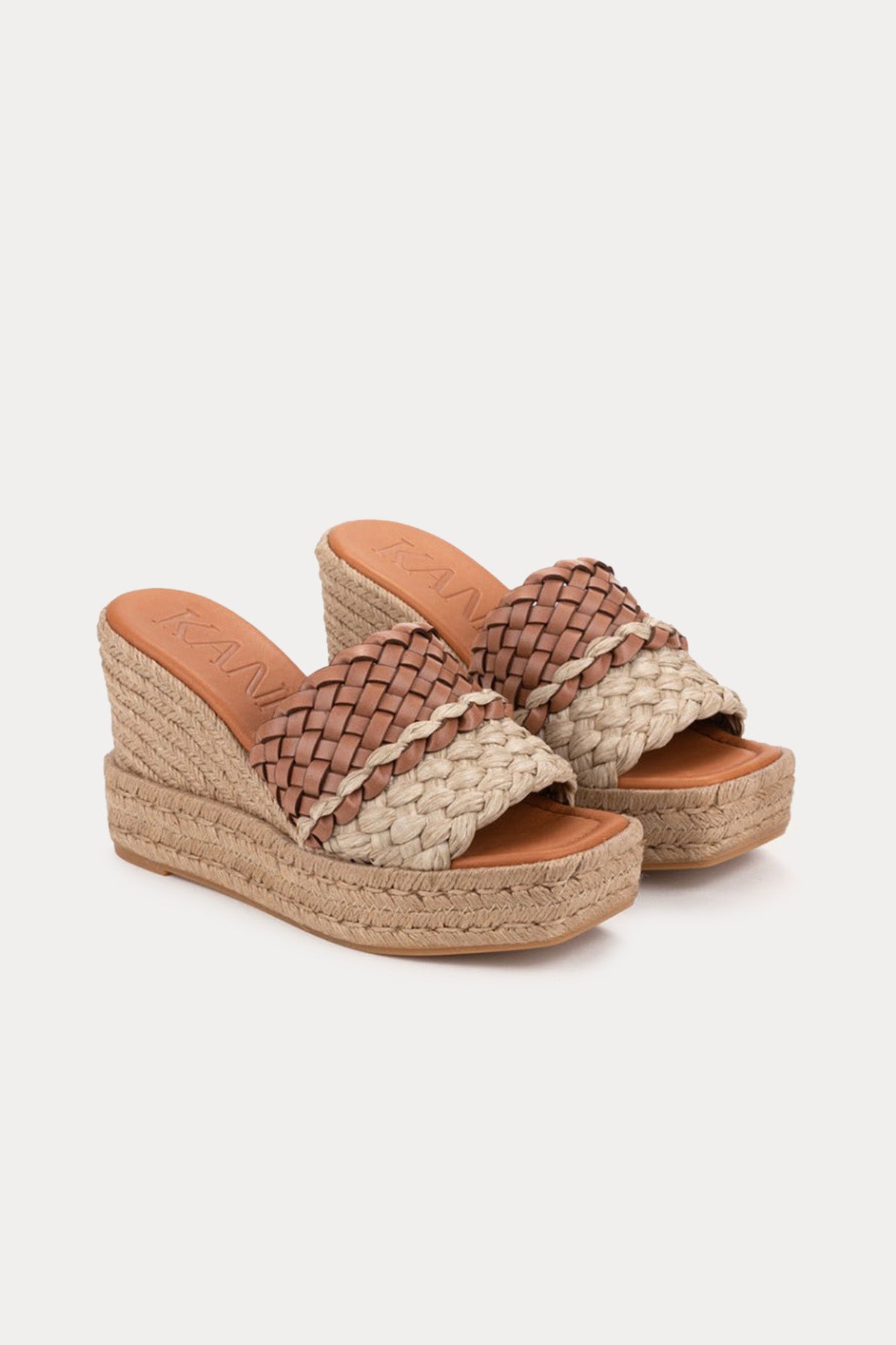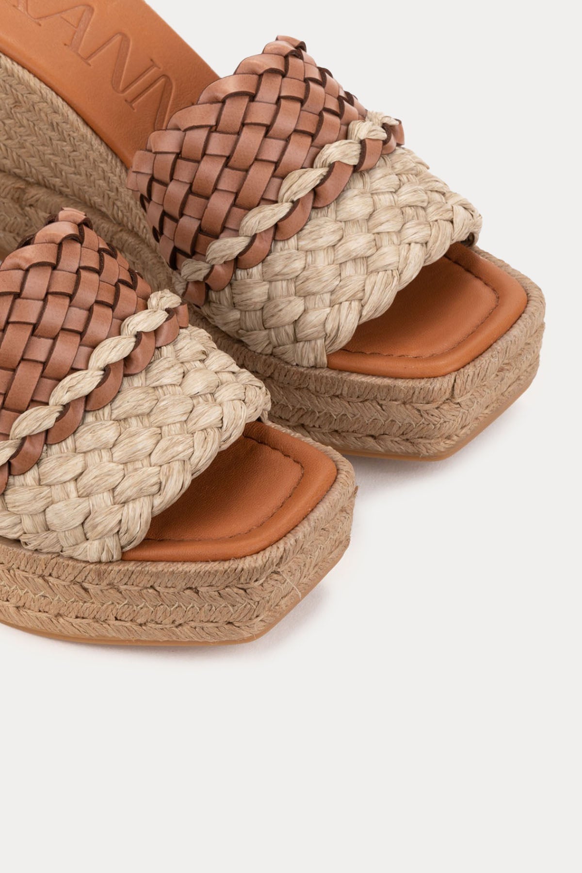 Kanna Lujan Deri Ve Hasır Örgülü Küt Burun Terlik