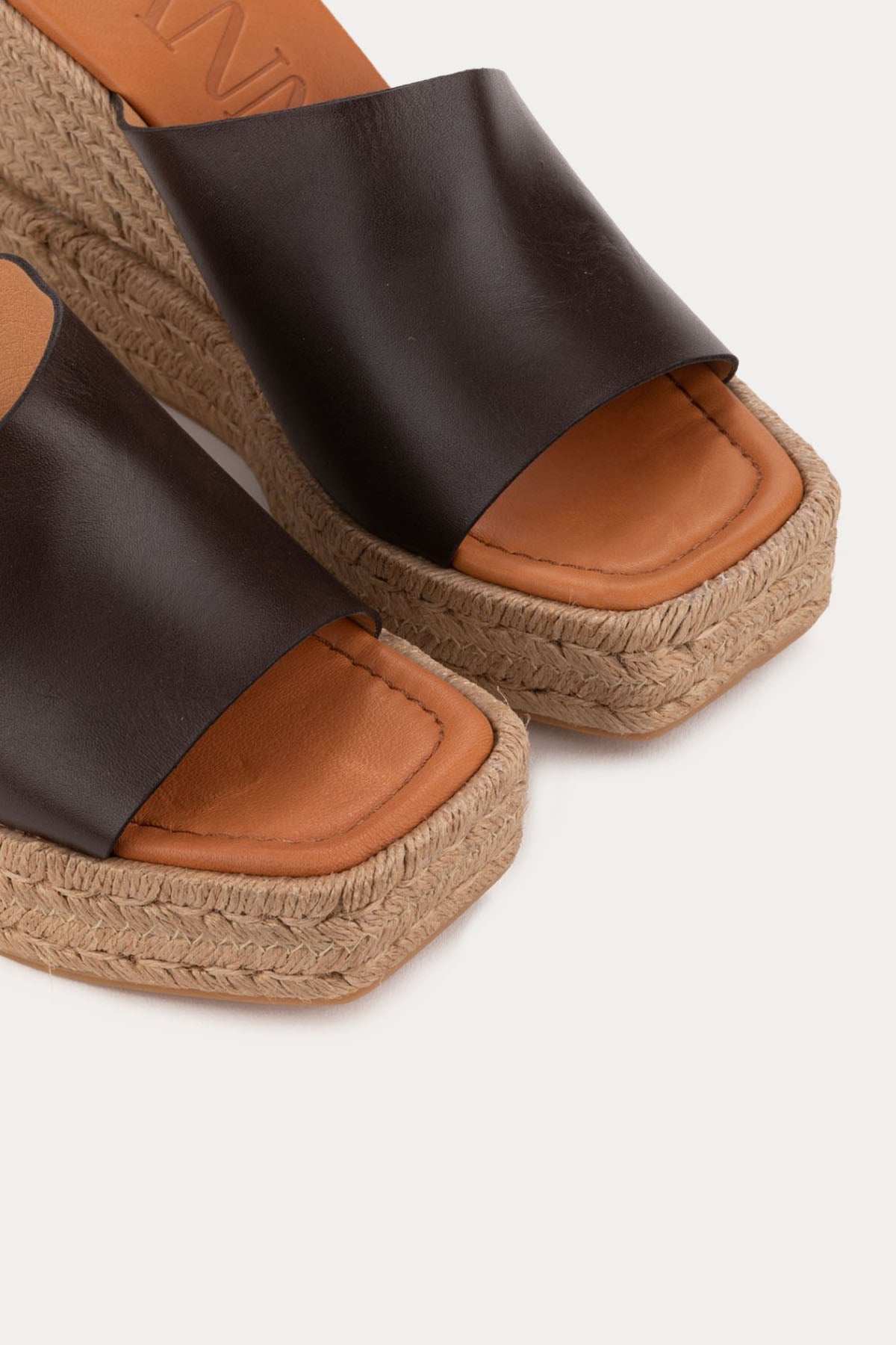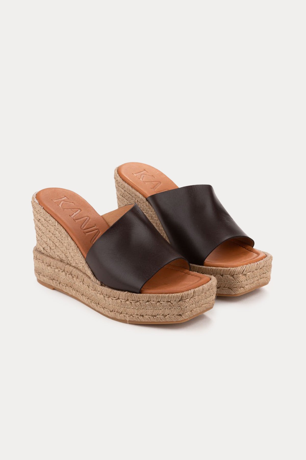 Kanna Lujan Hasır Örgü Detaylı Küt Burun Deri Terlik