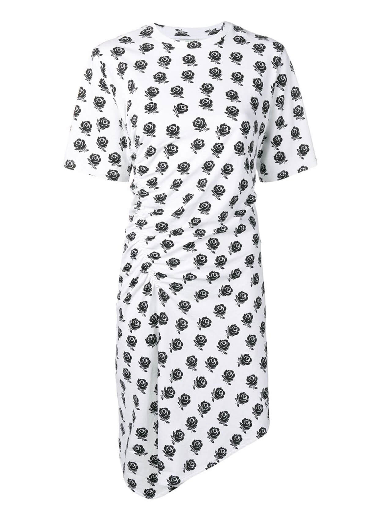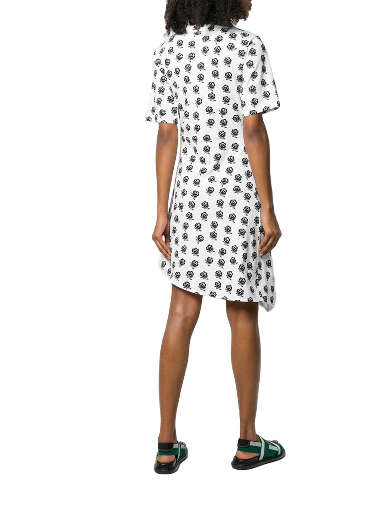- Kenzo'dan beyaz pamuklu çiçek baskılı asimetrik elbise.