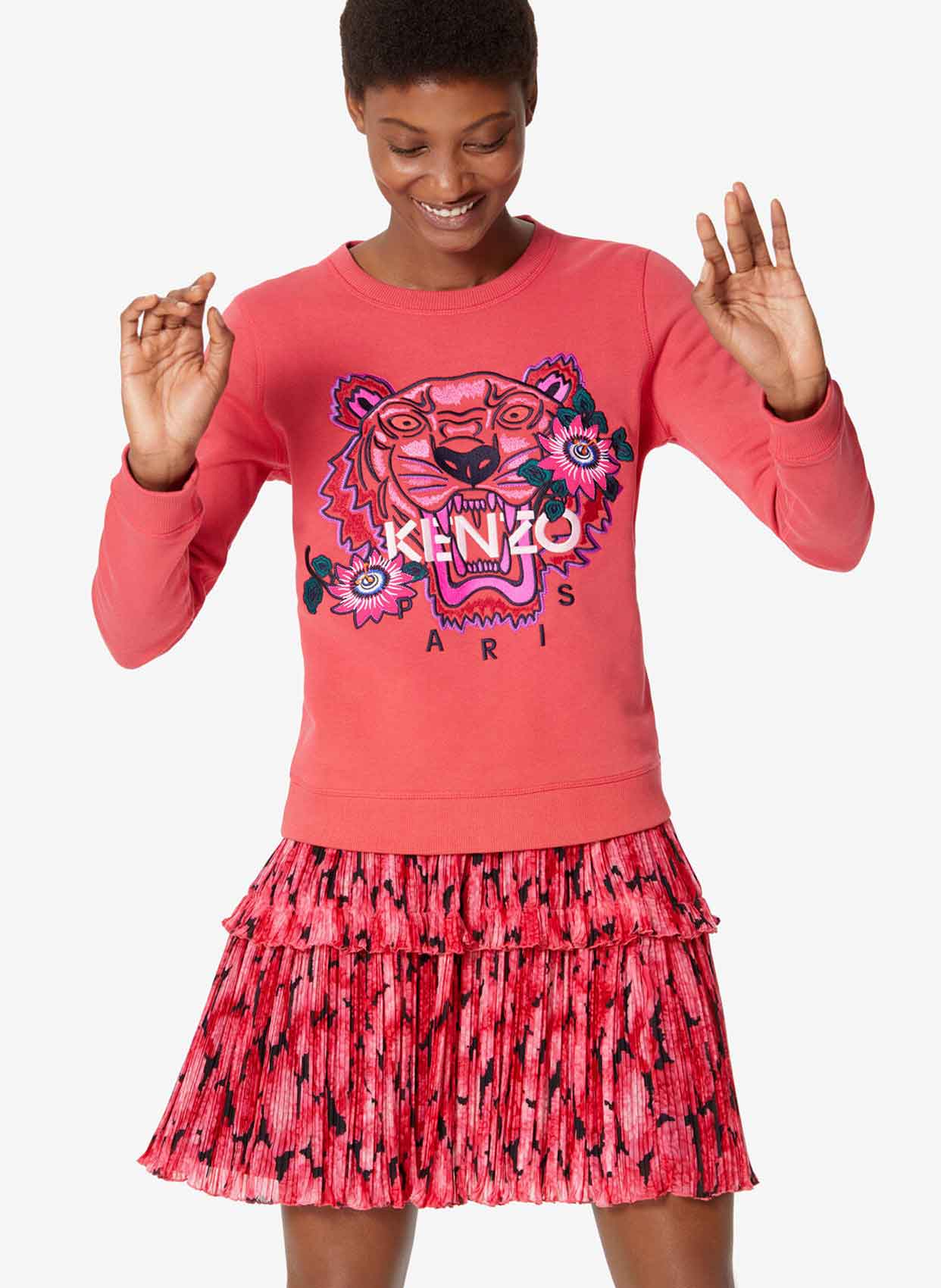 - Bu 'Passion Flower' Tiger sweatshirt seyahatten ilham alan bir koleksiyonu yansıtıyor. KENZO'nun sembolik Kaplan'ı, Perulu nakışı ekoleyen ve parçaya şenlikli, kadınsı bir dokunuş katan çiçek panelleriyle süslenmiştir.