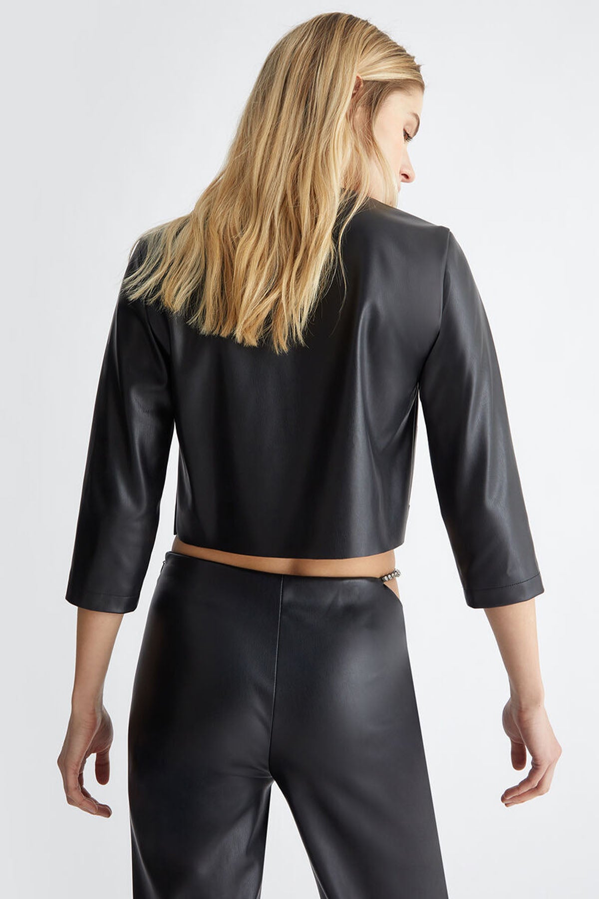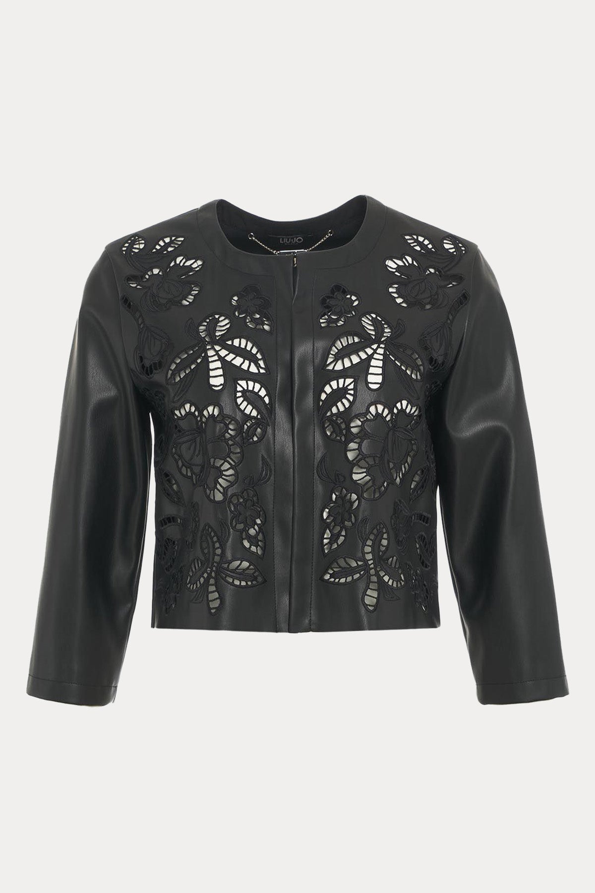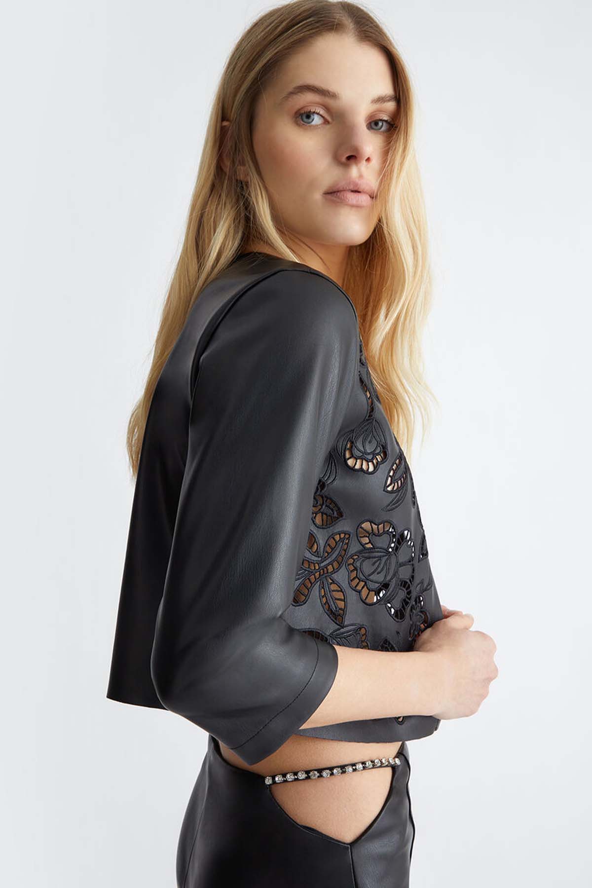 Liu Jo Lazer Kesim Nakışlı Crop Deri Ceket