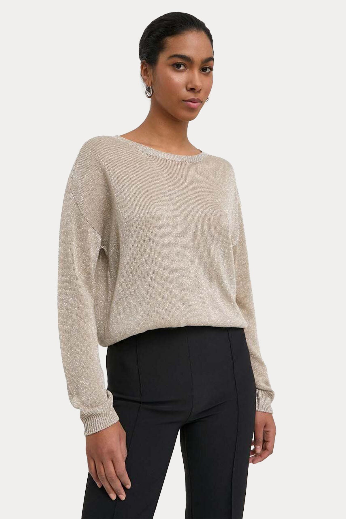 - Yuvarlak yaka uzun kollu triko.