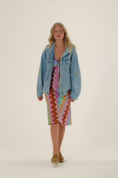 Meme Road V Yaka Renkli Örgü Midi Elbise