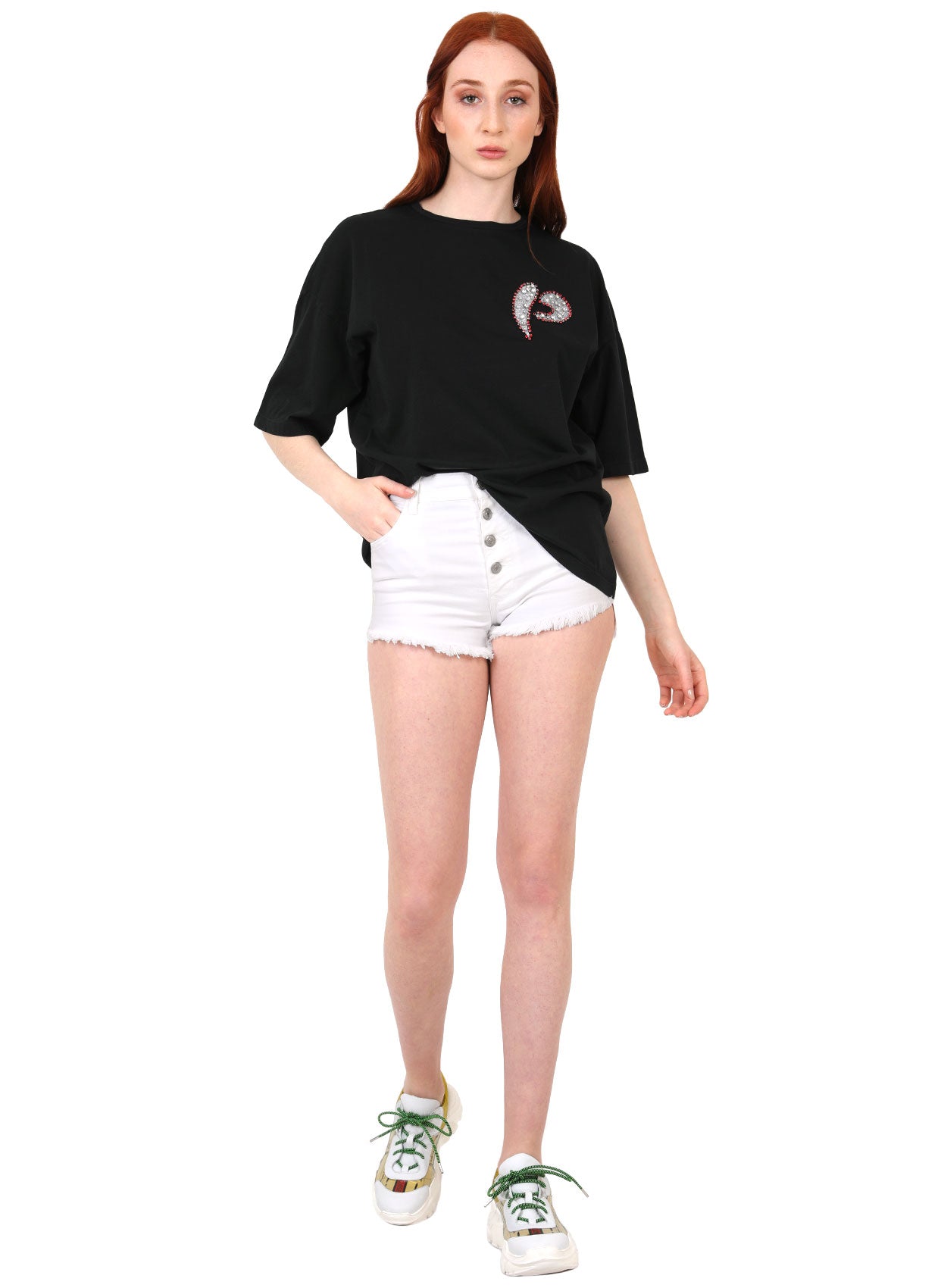 - Yuvarlak yaka kısa kollu t-shirt.