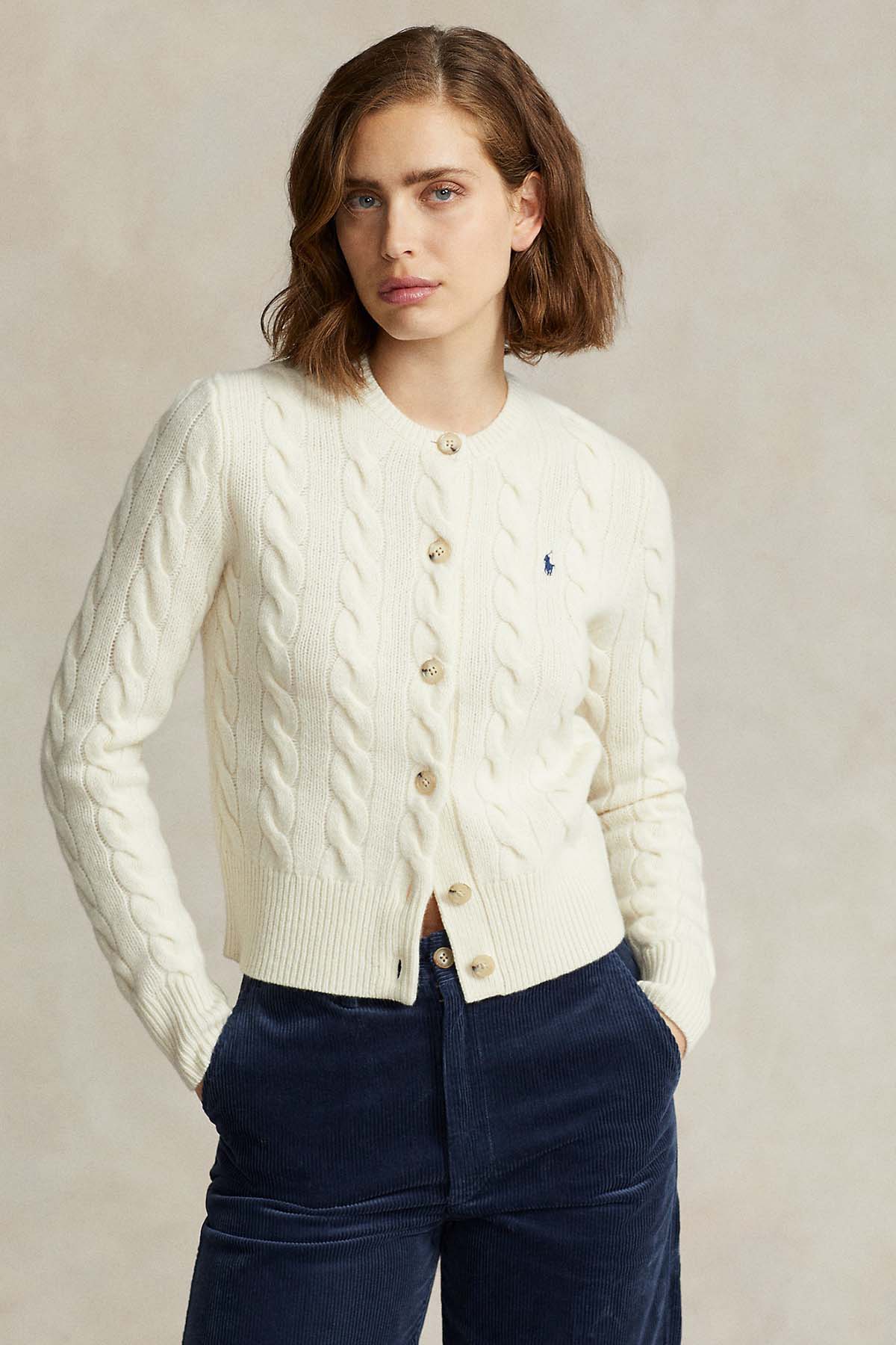 Polo Ralph Lauren Slim Fit Kaşmirli Saç Örgü Yün Triko Ceket