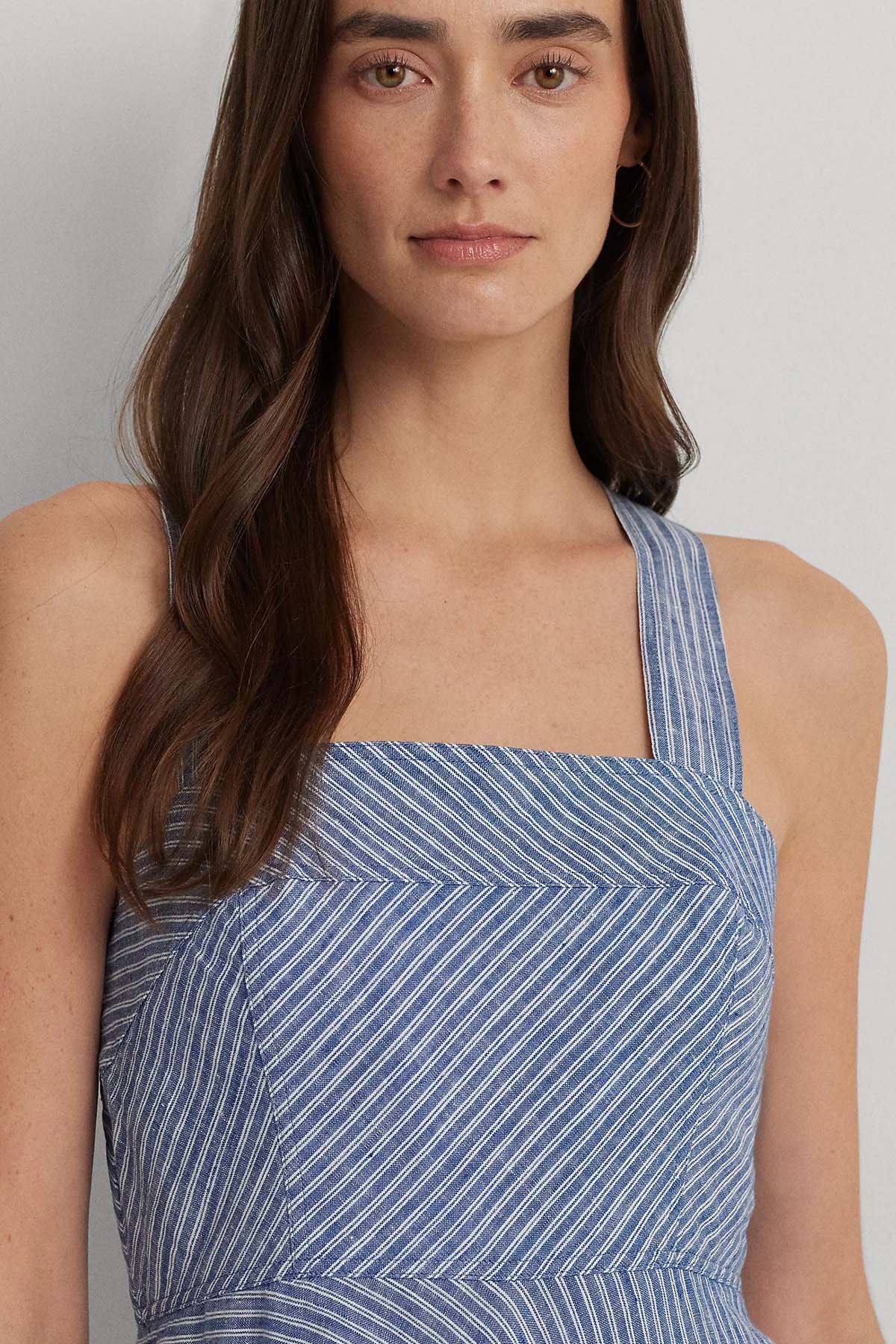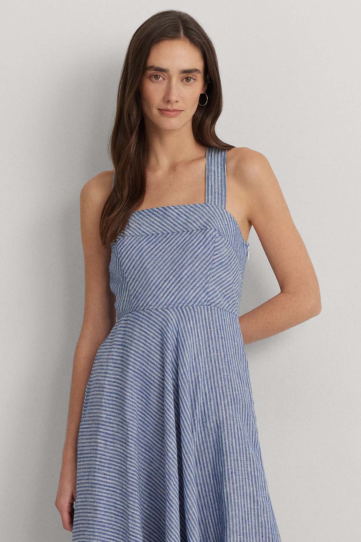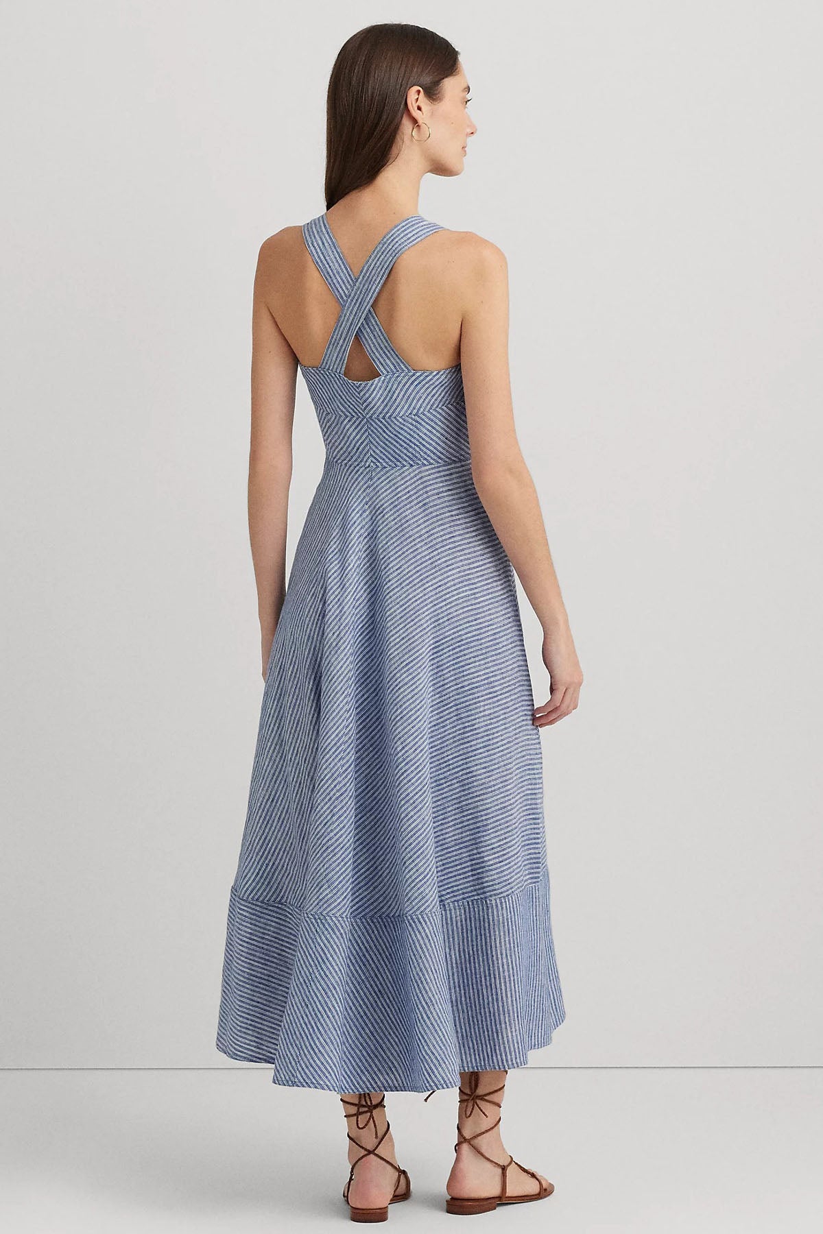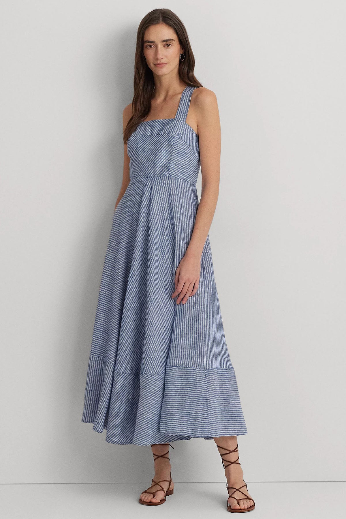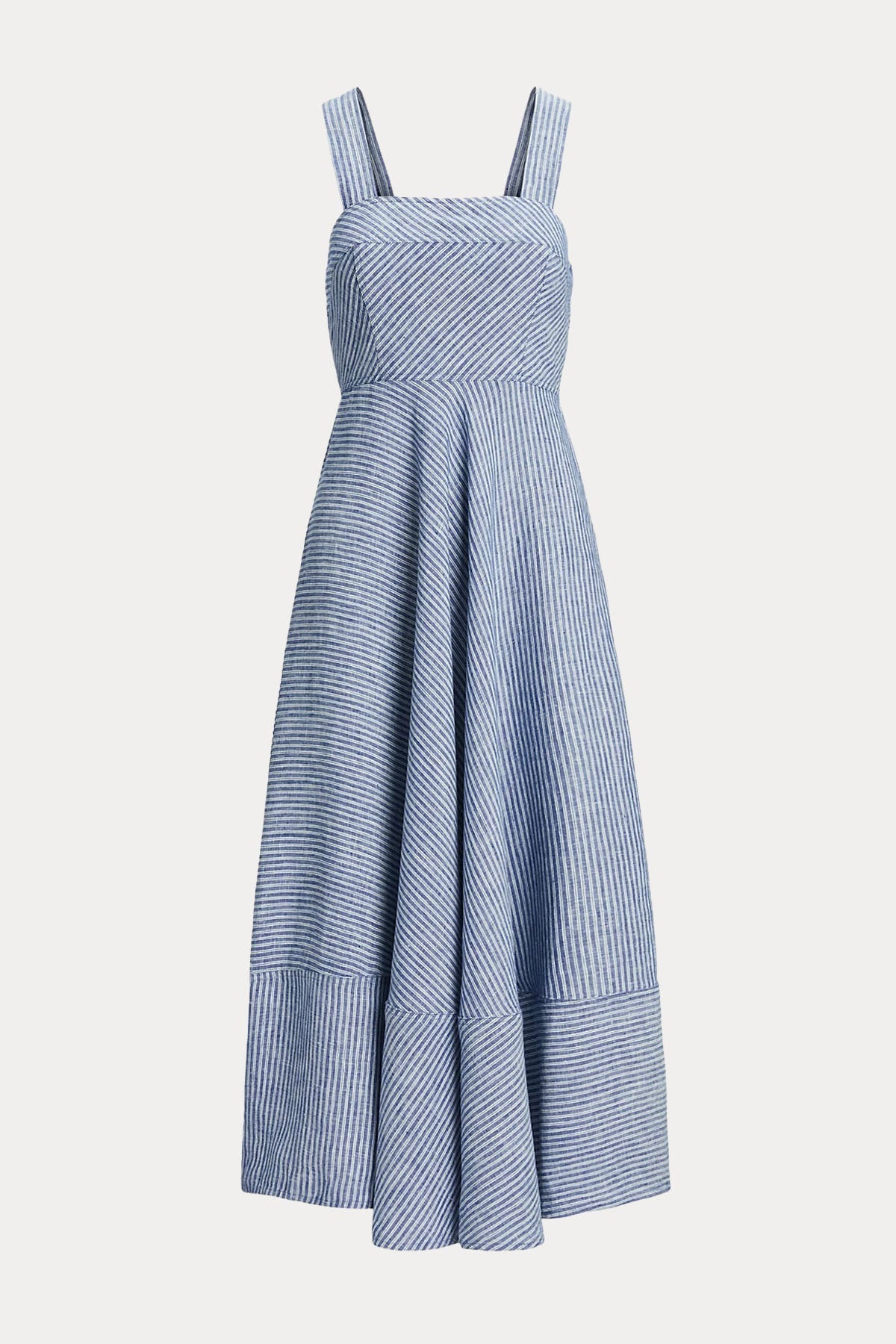 Polo Ralph Lauren Çizgili Midi Keten Elbise