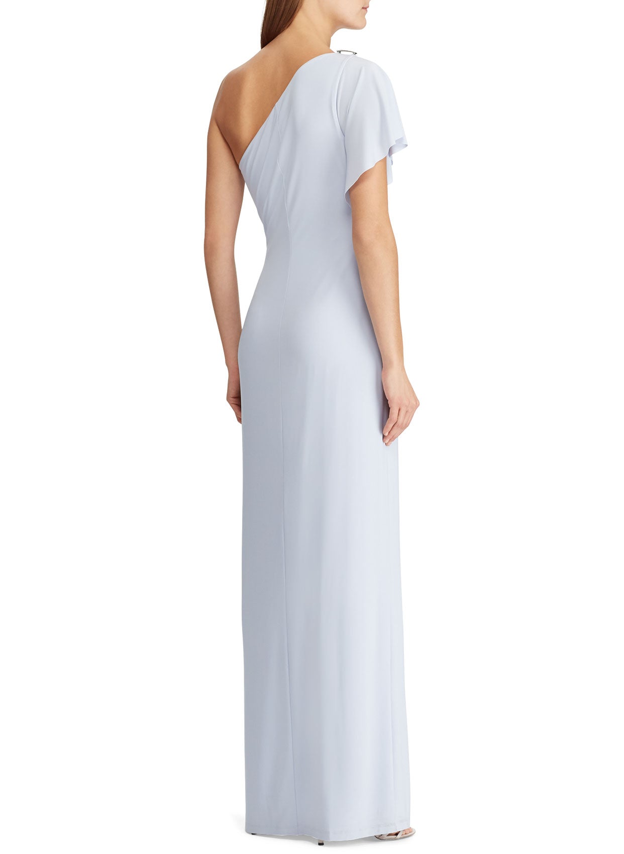- Ruffled detaylandırma ve parlak bir dekoratif pim, özel günler için mükemmel olan bu jarse tek omuz elbisesinin çarpıcı zarafetini tanımlar.