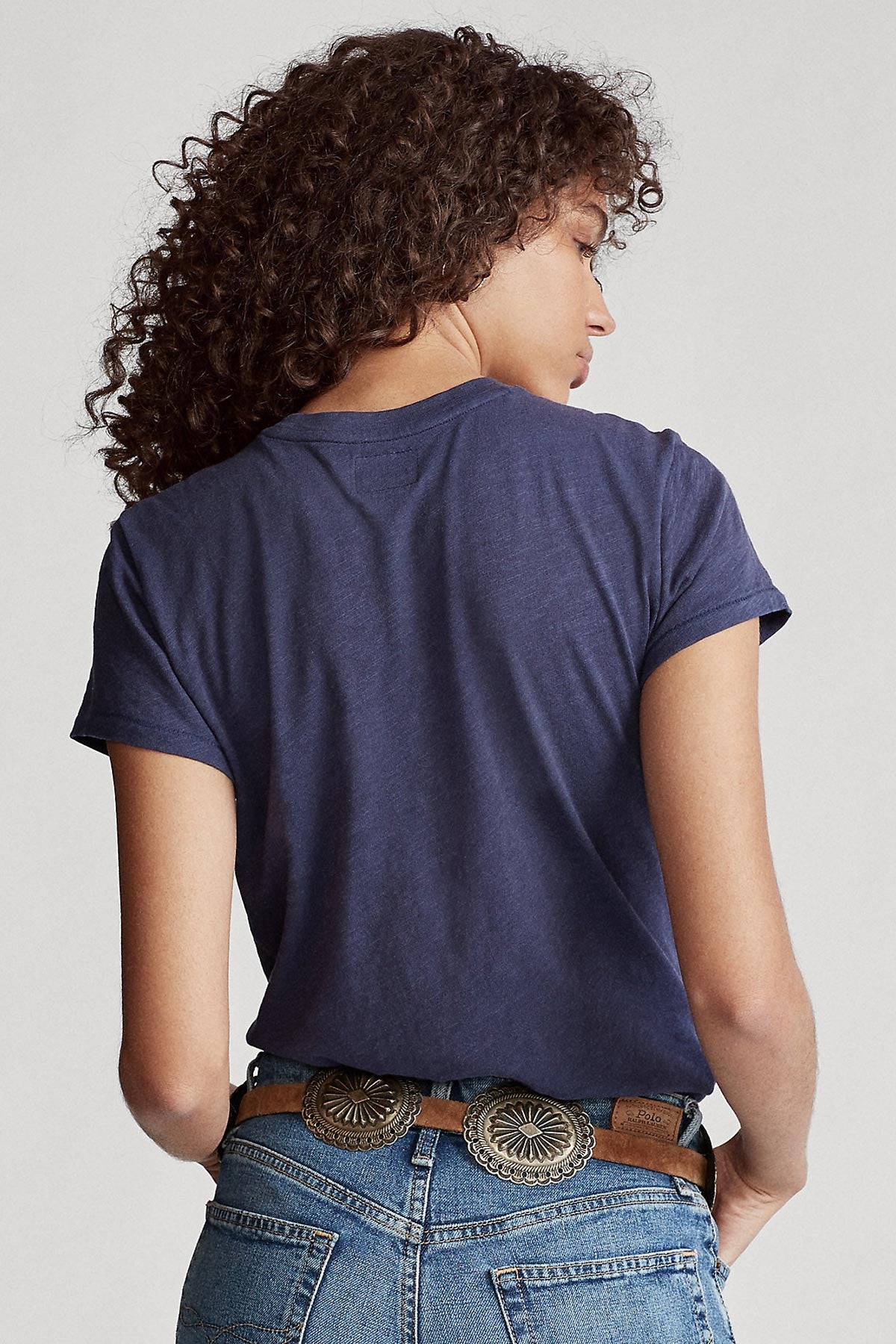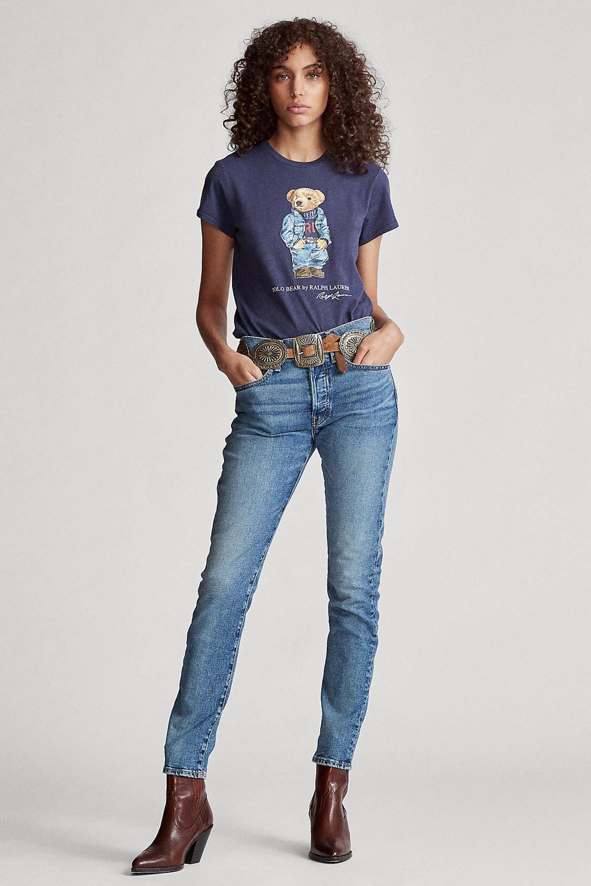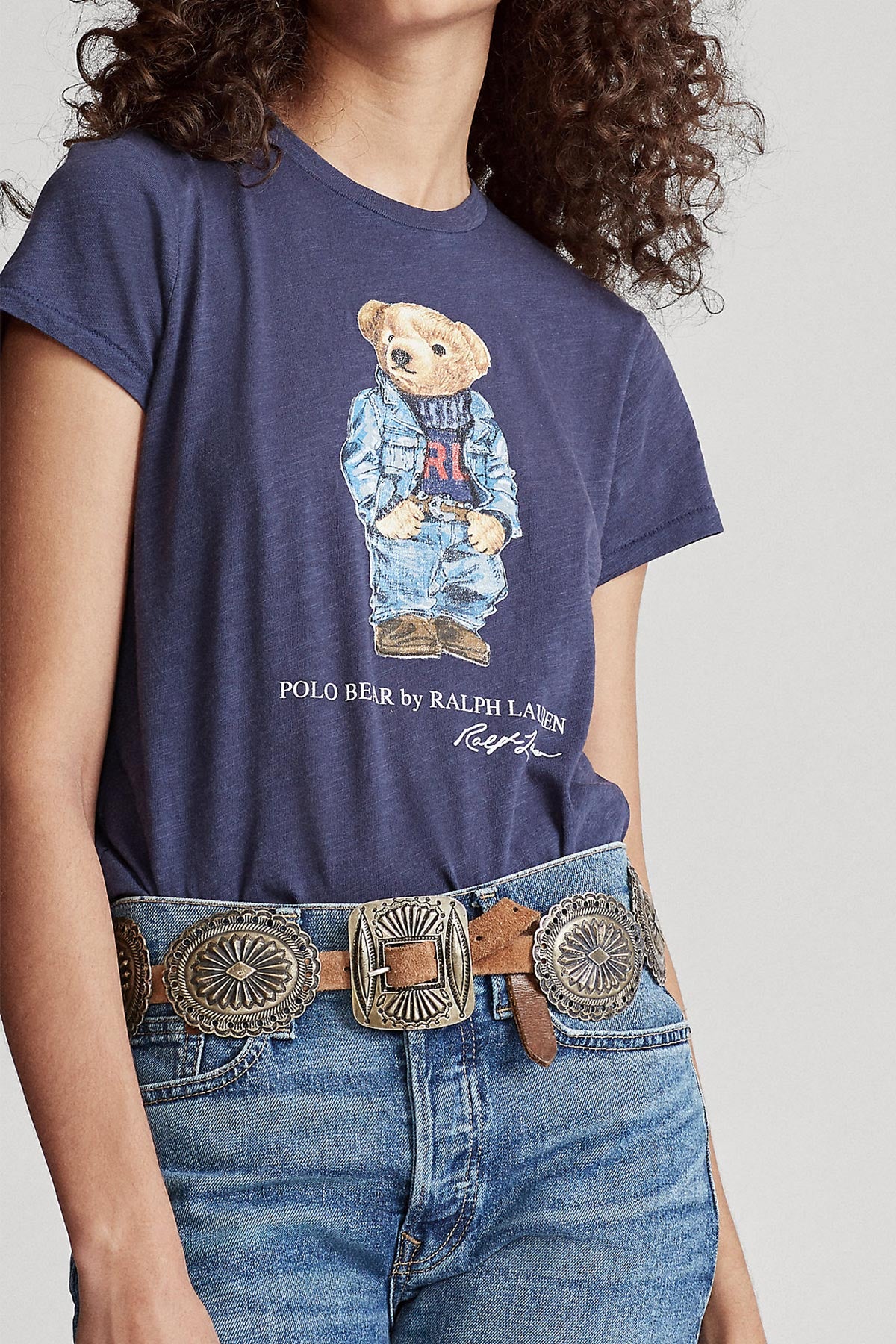 - Bu pamuklu crewneck t-shirt, Polo'nun otantik denim kıyafetlerini giymiş ikonik Polo Bear maskotuna sahiptir.