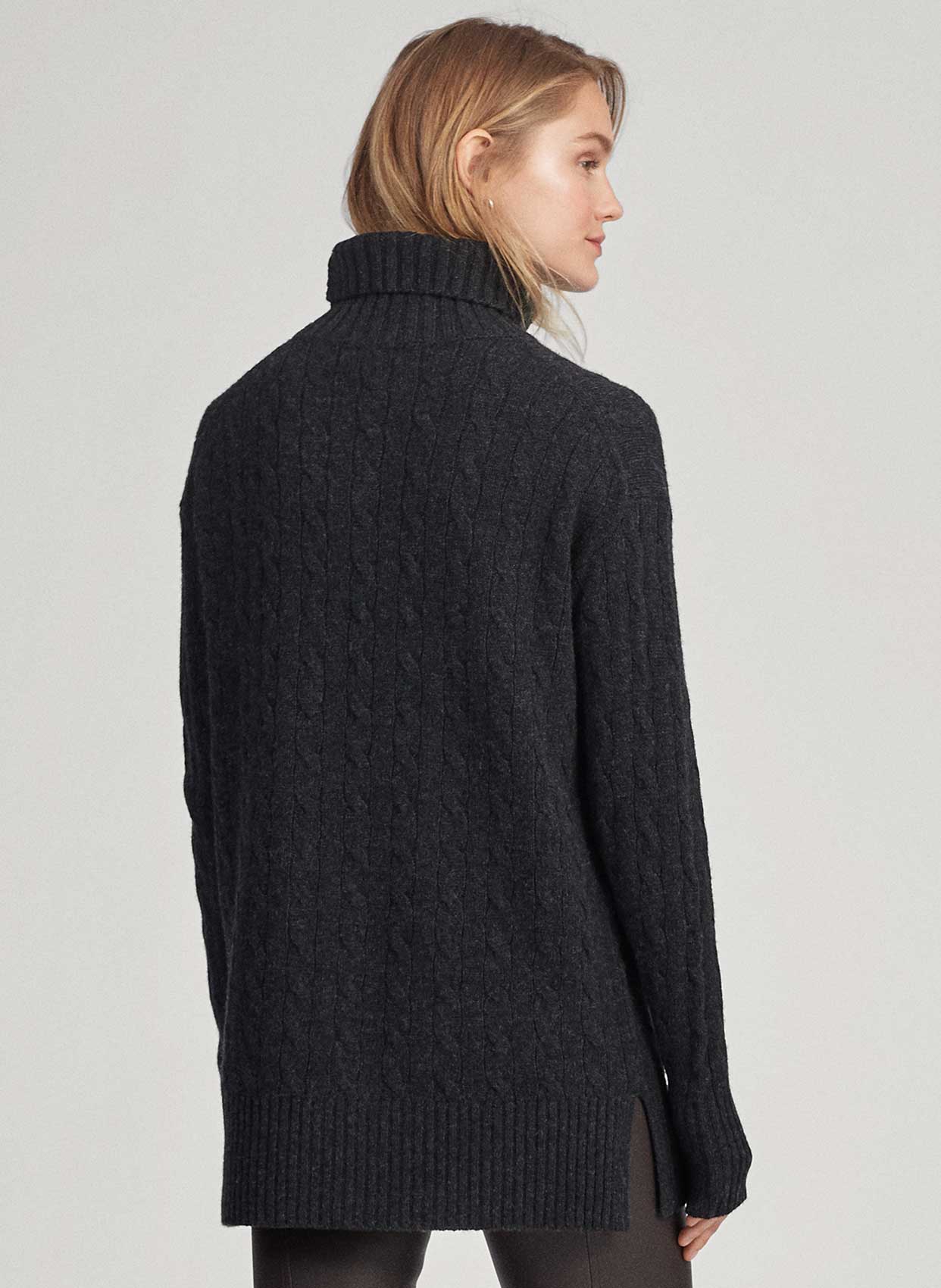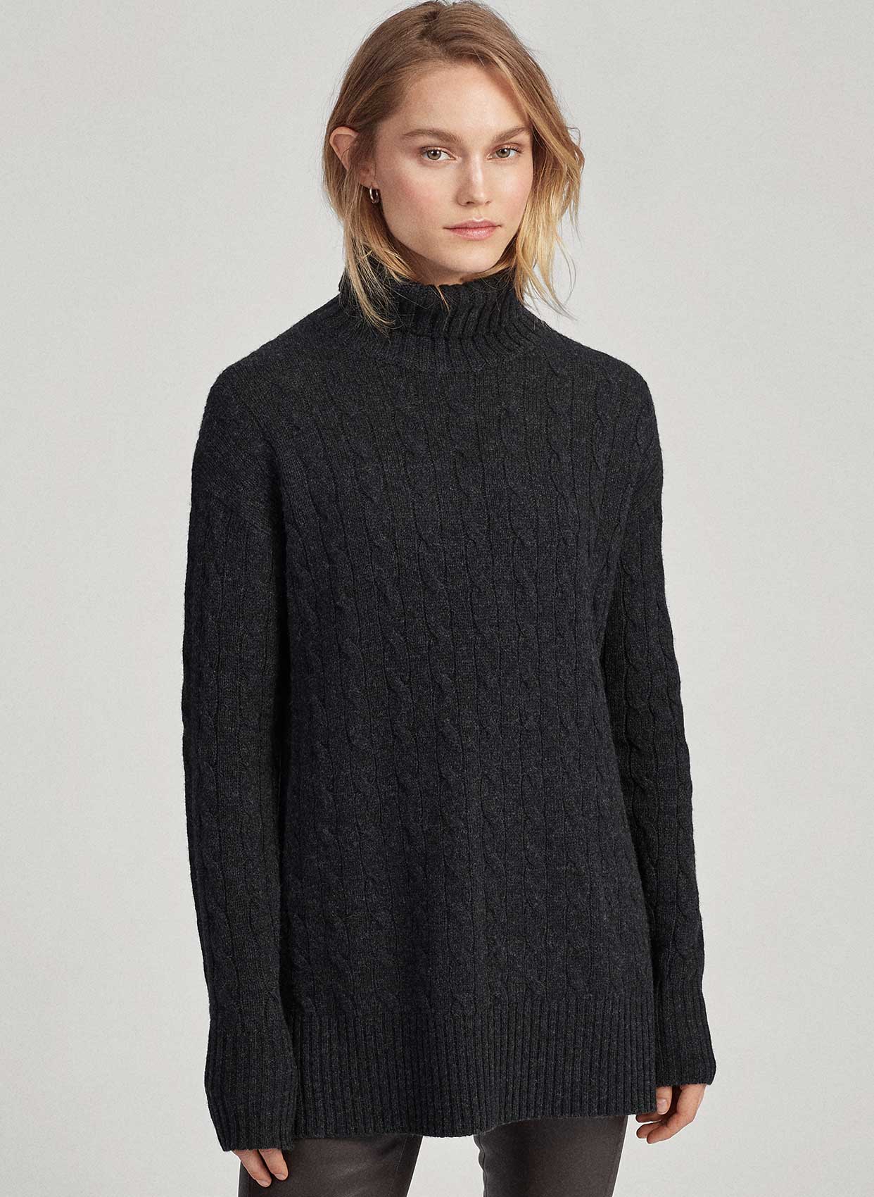 - Boğazlı uzun kollu kaşmir karışımlı yün triko.