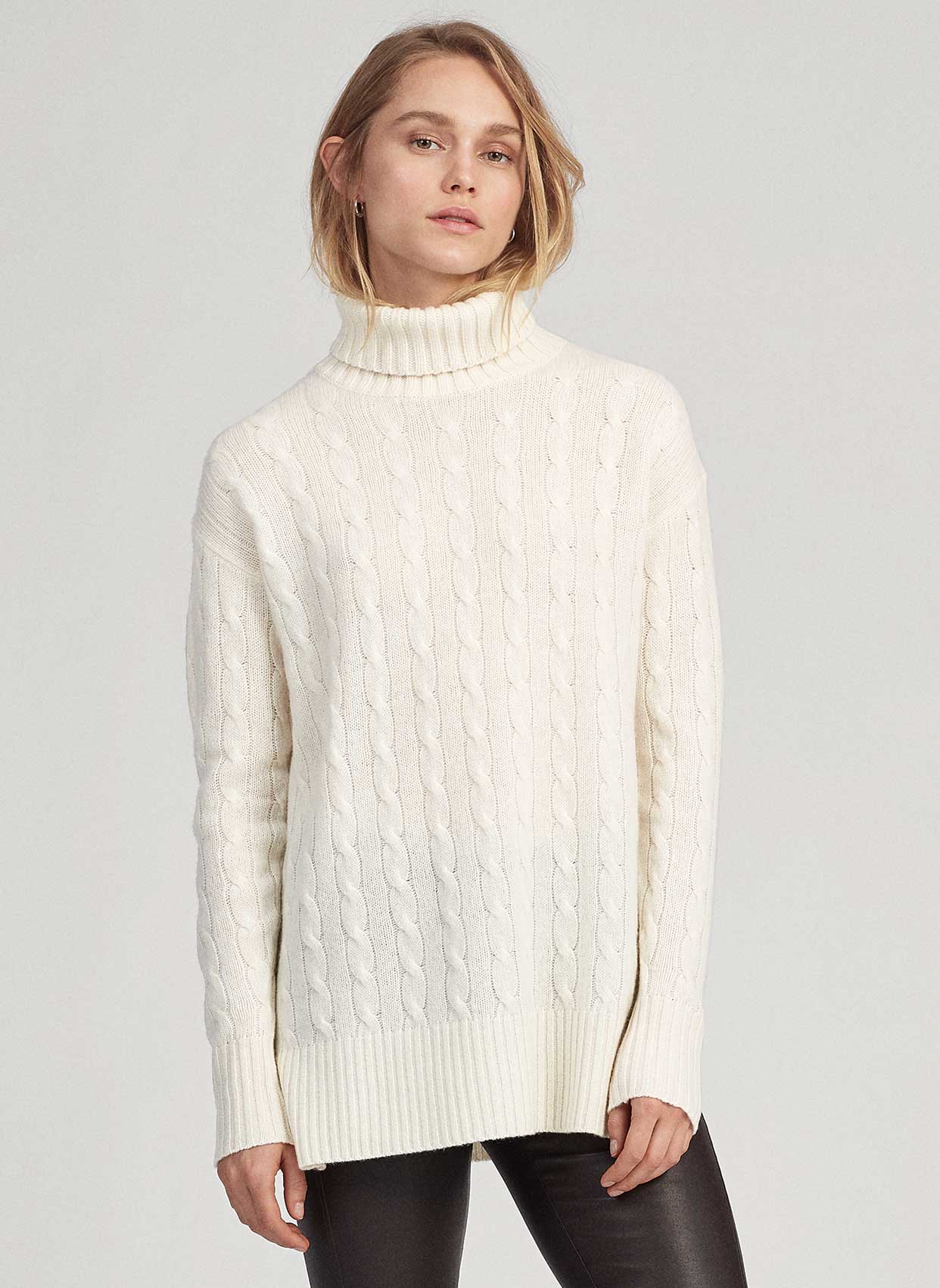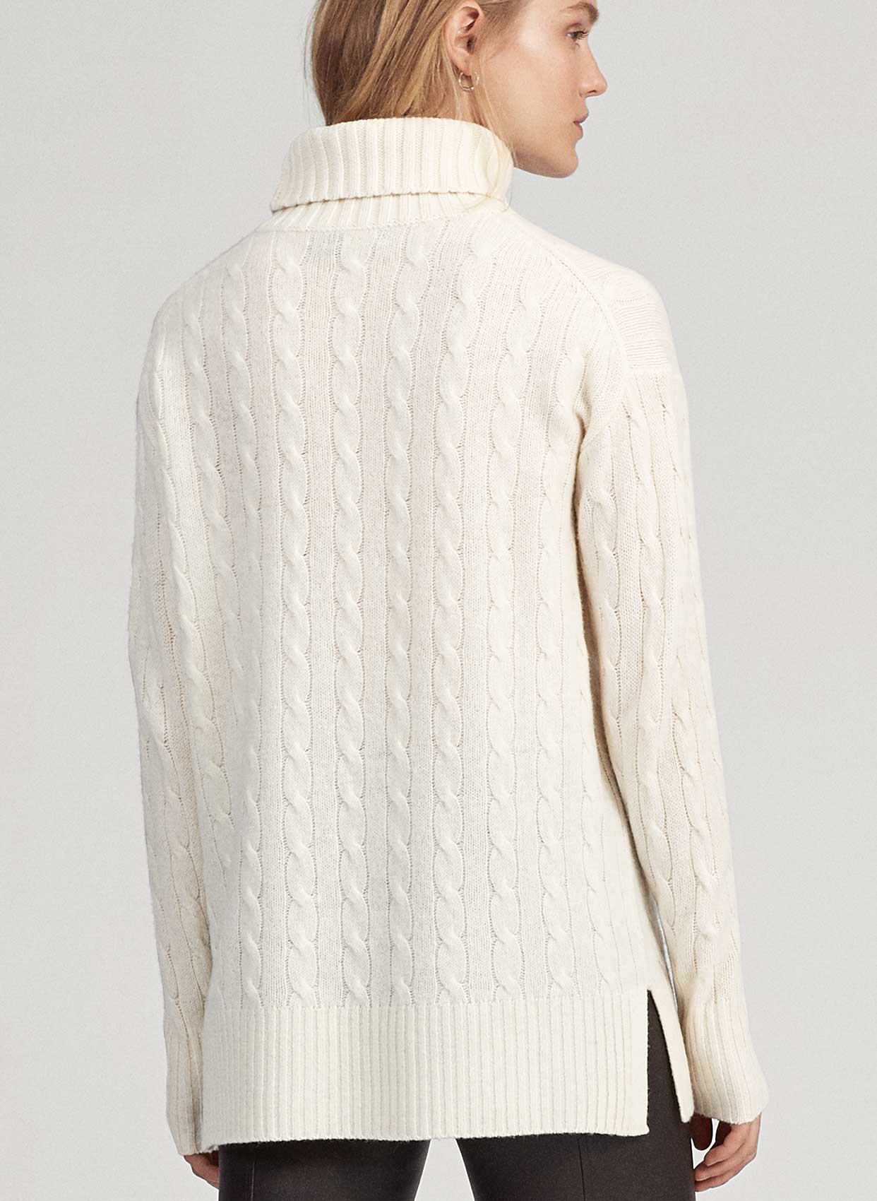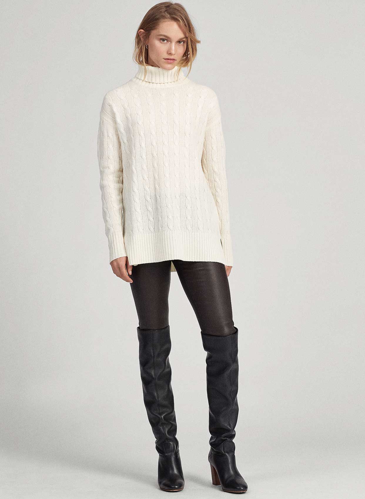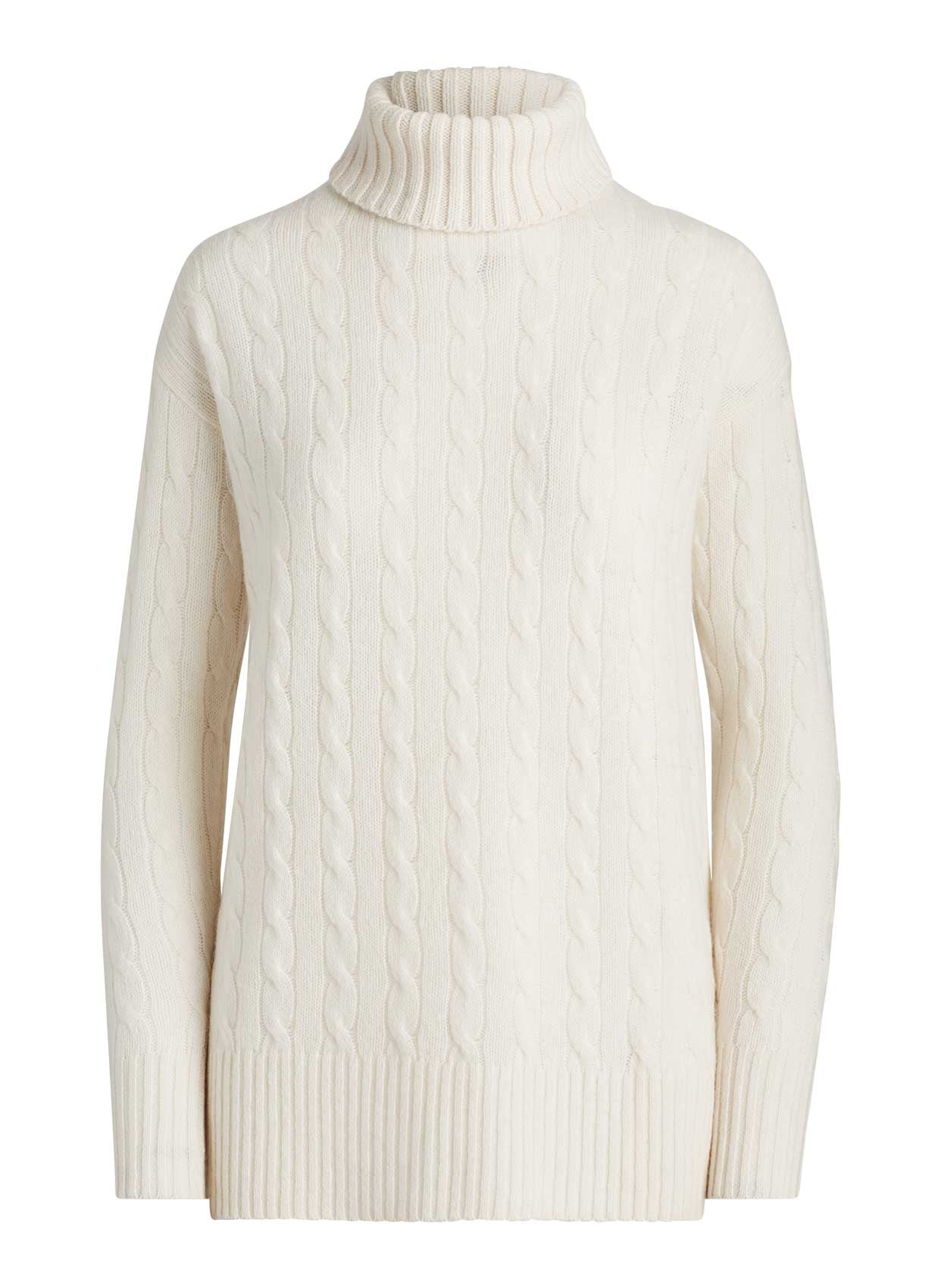 - Boğazlı uzun kollu kaşmir karışımlı yün triko.