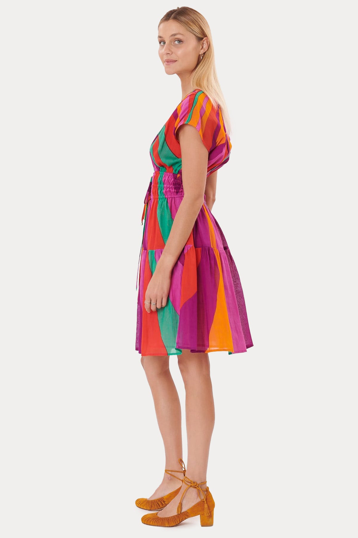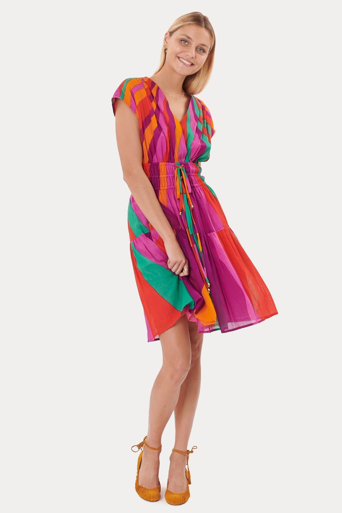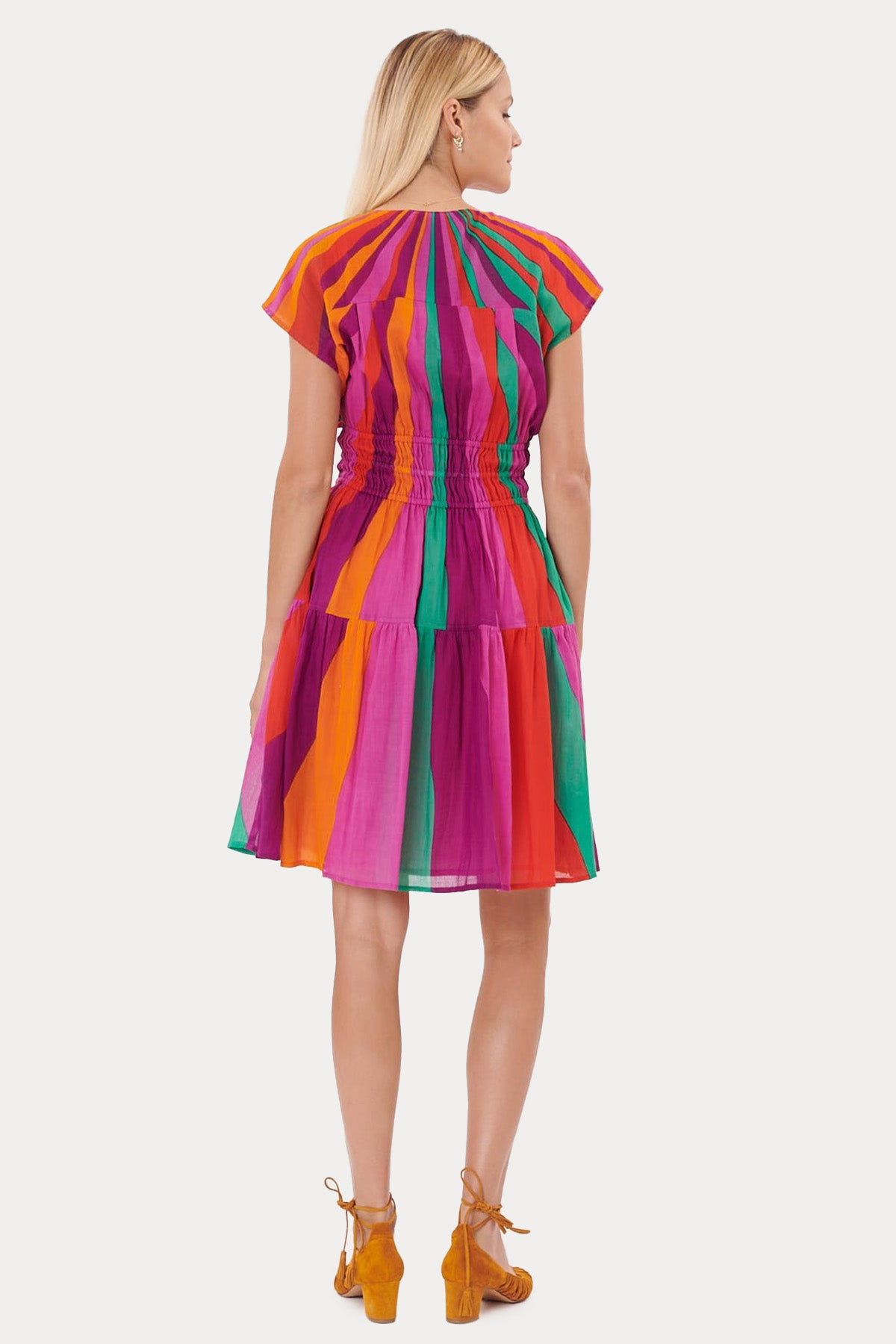 Rene Derhy V Yaka Belden Büzgülü Desenli Dizüstü Elbise