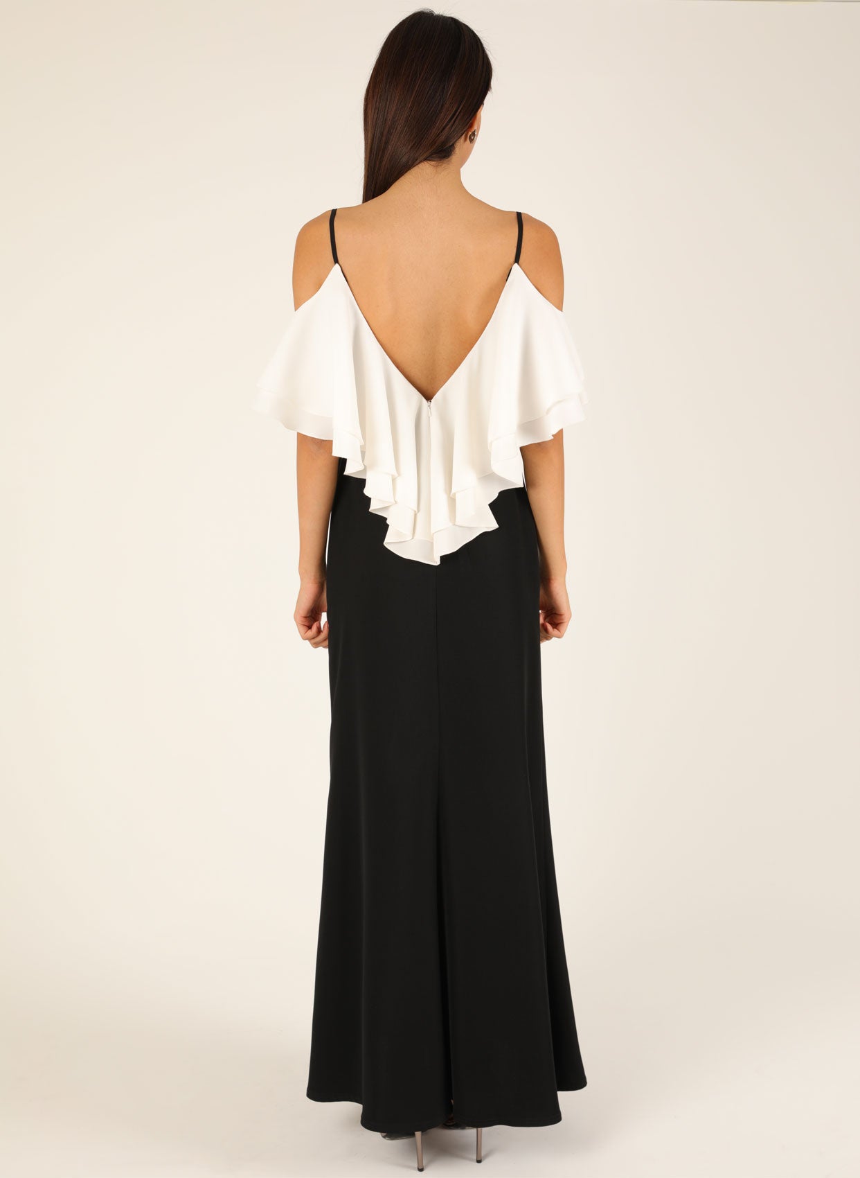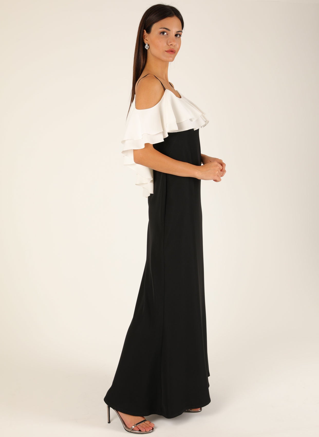 - Omuzlarda beyaz kumaşlar elbiseye bambaşka bir hava katmaktadır.