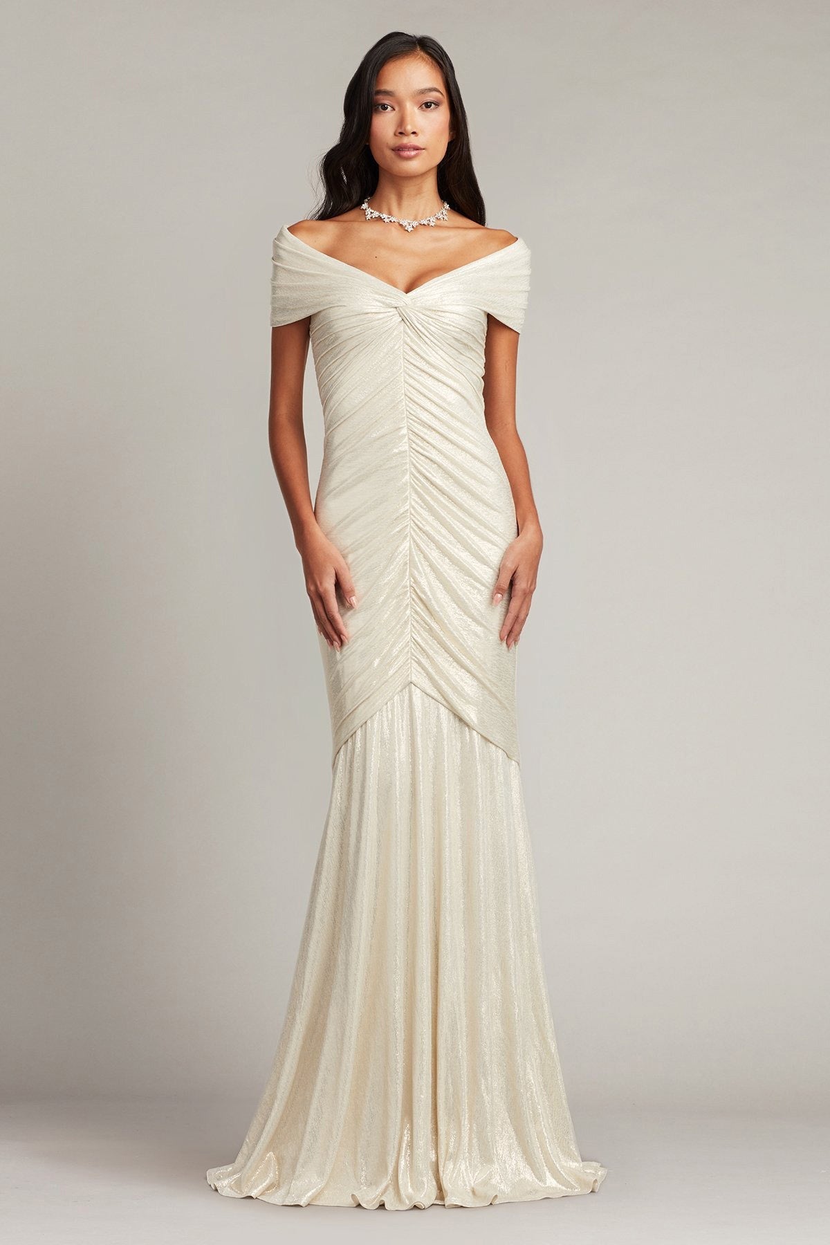 Tadashi Shoji Straplez Yaka Pileli Maxi Abiye Elbise