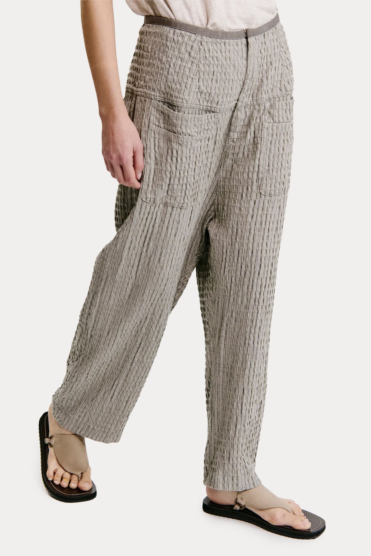 Transit Comfort Fit Çizgili Gofre Kumaş Keten Pantolon