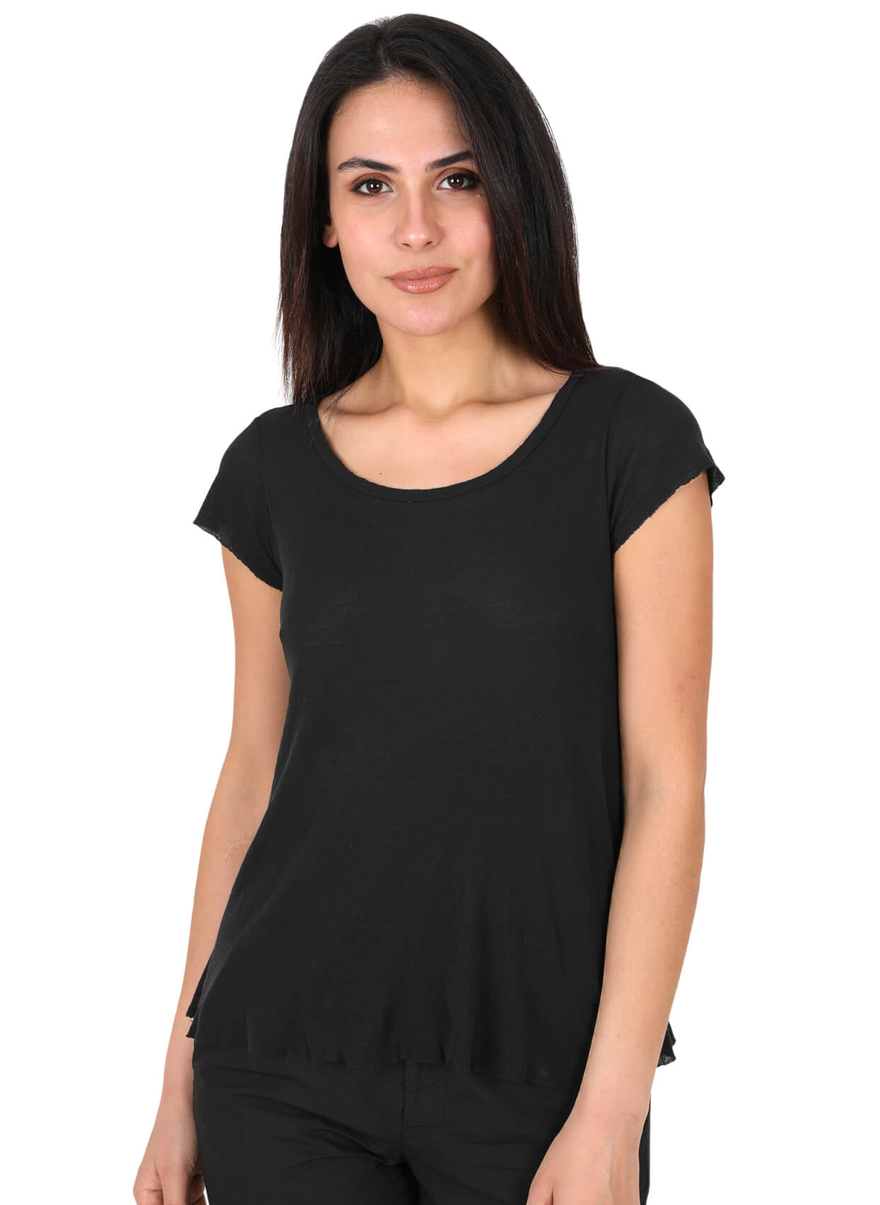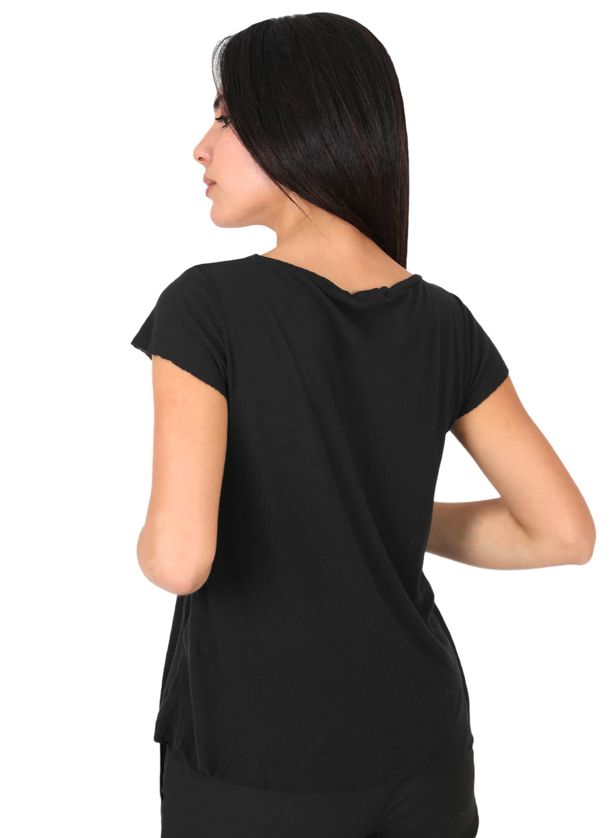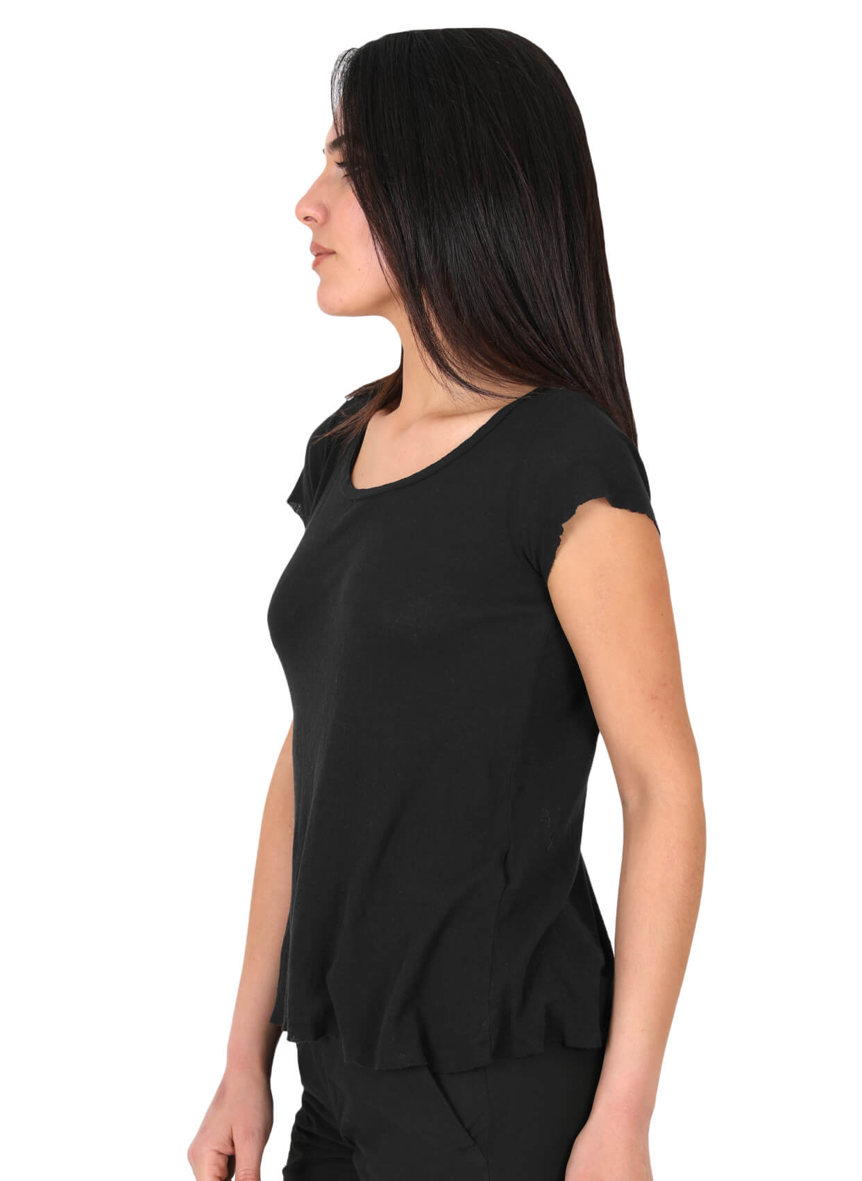 - Kol ve etek uçları asimetrik lazer kesim ile tasarlanmış Transit t-shirt