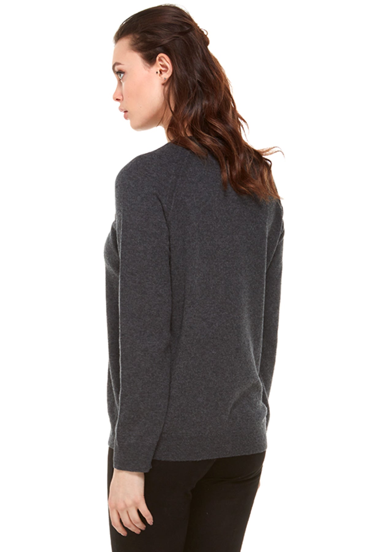 - Yuvarlak yaka uzun kollu yün triko.